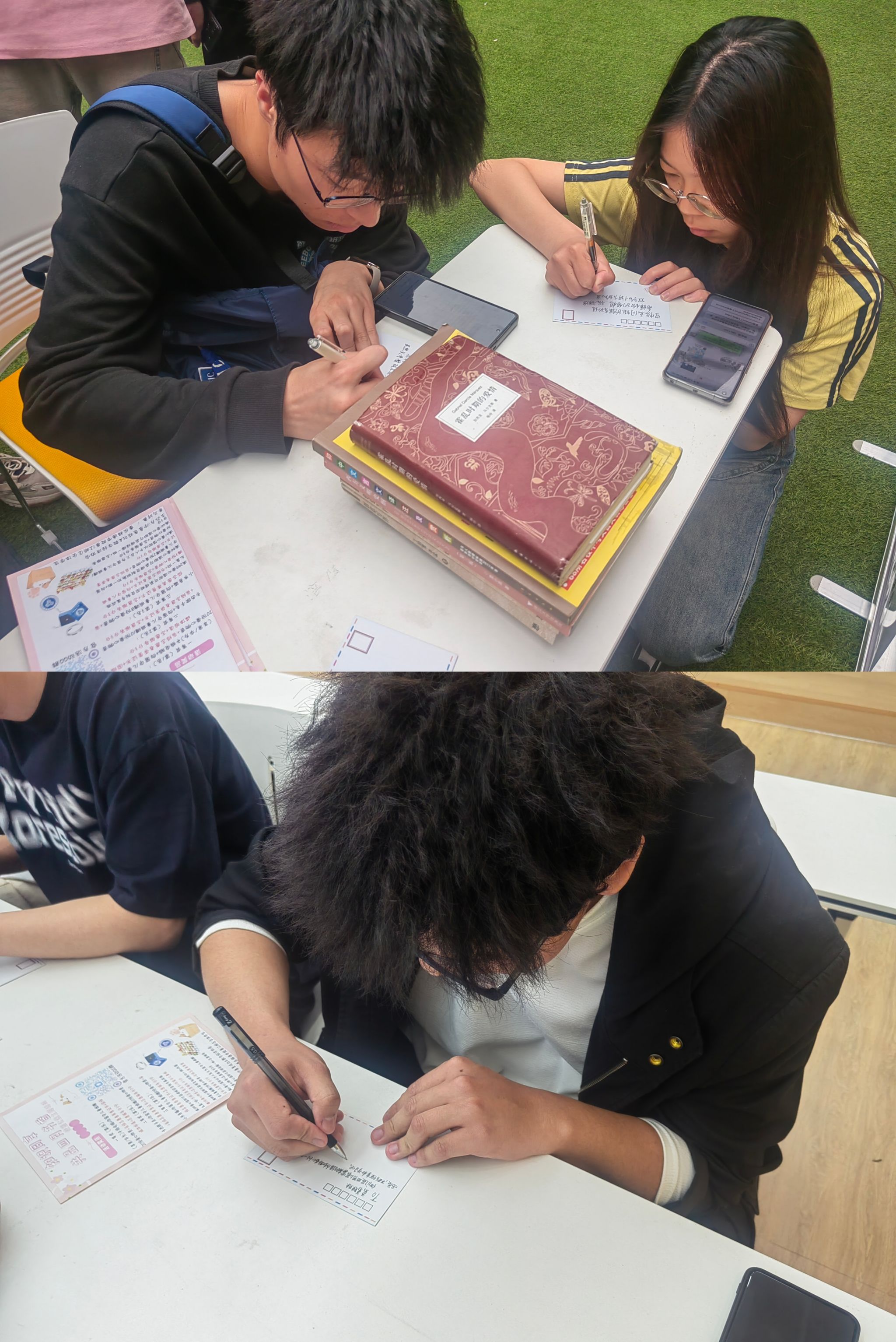 第二位同学兴奋地分享道:“制作明信片的过程中,我充分发挥了自己的创意和想象力,将书籍的元素与温暖的话语融合在一起,希望能够给小学生们带去一份特别的惊喜。通过这次活动,我更加明白了知识的力量是无穷的,它能够启迪孩子们的思维,开阔他们的视野,让他们在未来的道路上更加自信与坚定。”