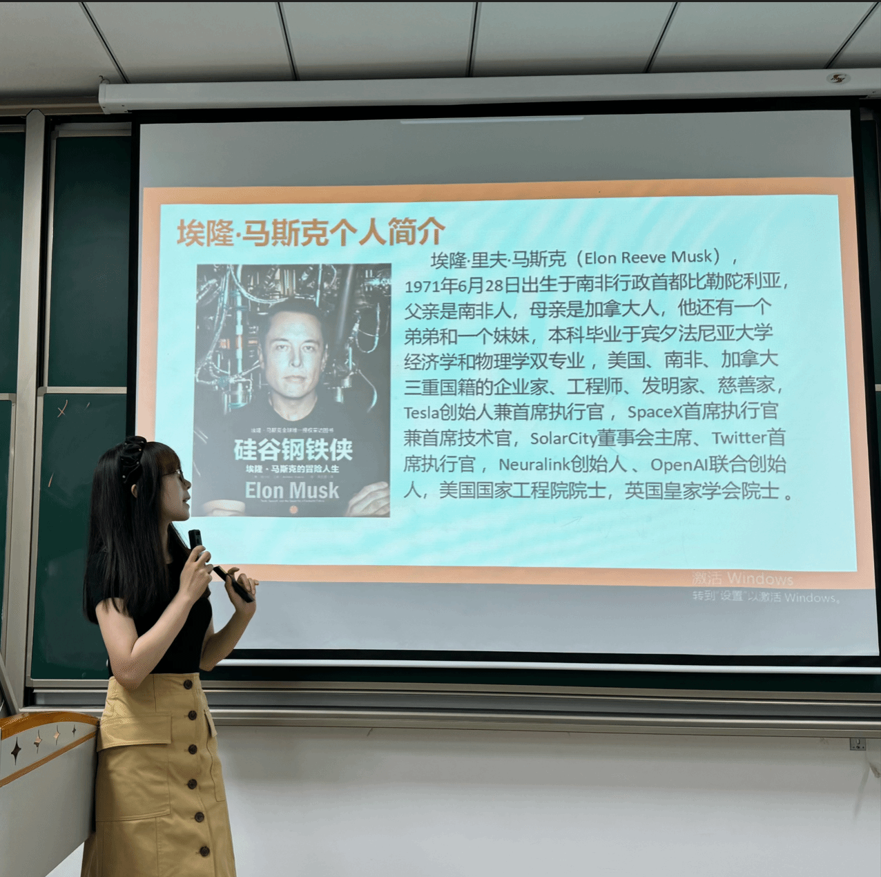 随后,郝老师向同学们介绍了《硅谷钢铁侠:埃隆·马斯克的冒险人生》,带领大家探索这位商业巨擘的传奇故事。郝老师从马斯克的童年性格、求学经历、创业历程和事业成就四个方面解读了该书的核心内容。作为杰出的企业家和创新者,马斯克凭借卓越的创新能力和坚韧不拔的意志,对科技产业和全球发展做出了突出贡献。