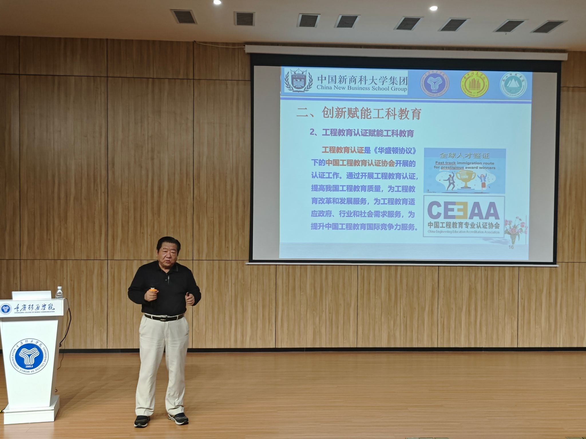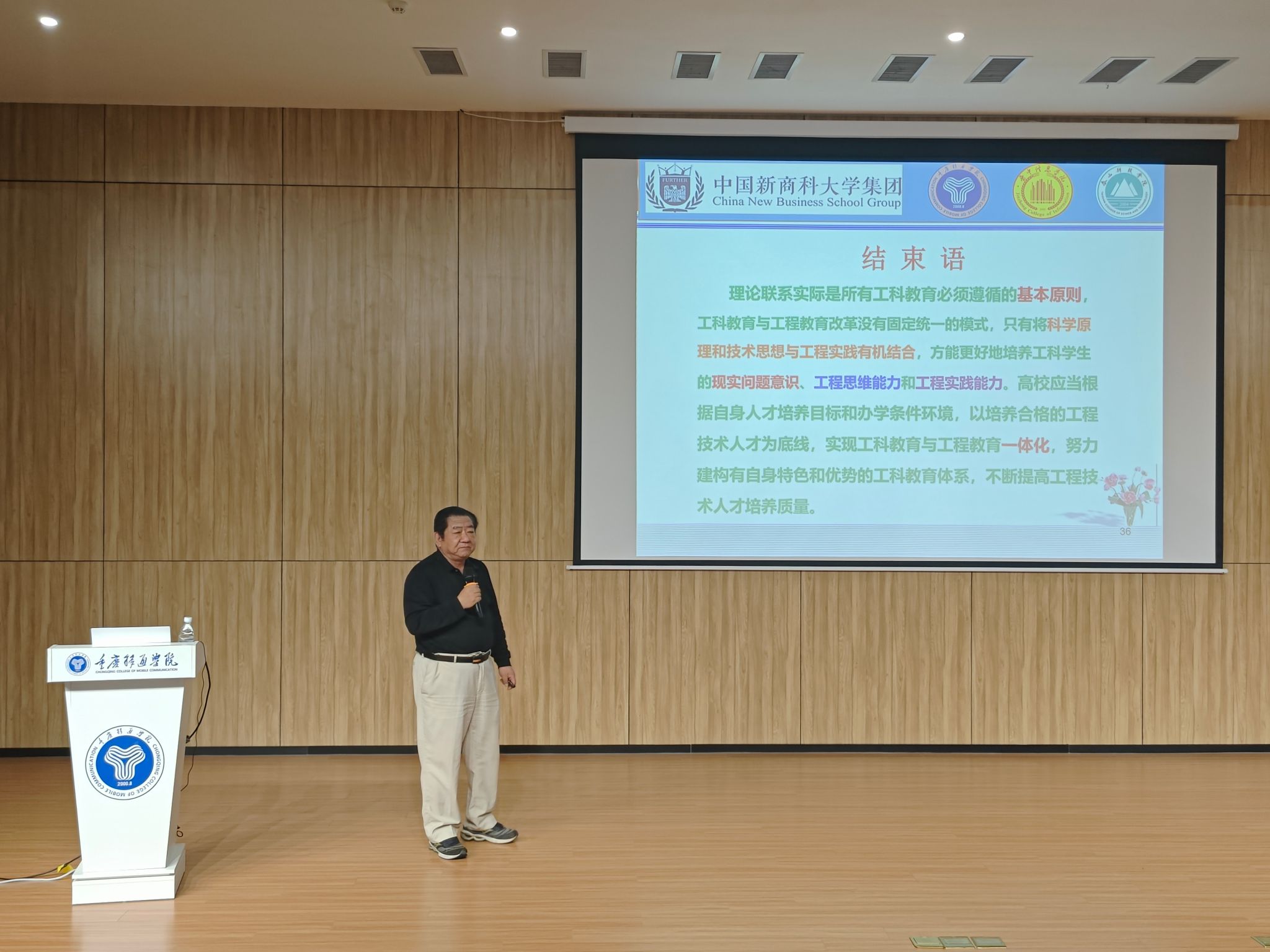 陈立潮教授分别从“工科教育与工程教育的联系、创新赋能工科教育、完满塑造合格人才”三个方面分析,让同学们了解到任何工程都是利用科学原理和必要技术制造或建造出来的,没有科学和技术知识,工科就缺少了根本。新工科建设赋能工科教育新工科建设不仅对工科专业建设提出了新的要求,同时,对未来工科学生培养目标、培养方式、培养内容提出了挑战,工科教育需要完满教育,完满教育赋予了学生走向社会的各种素质和能力。