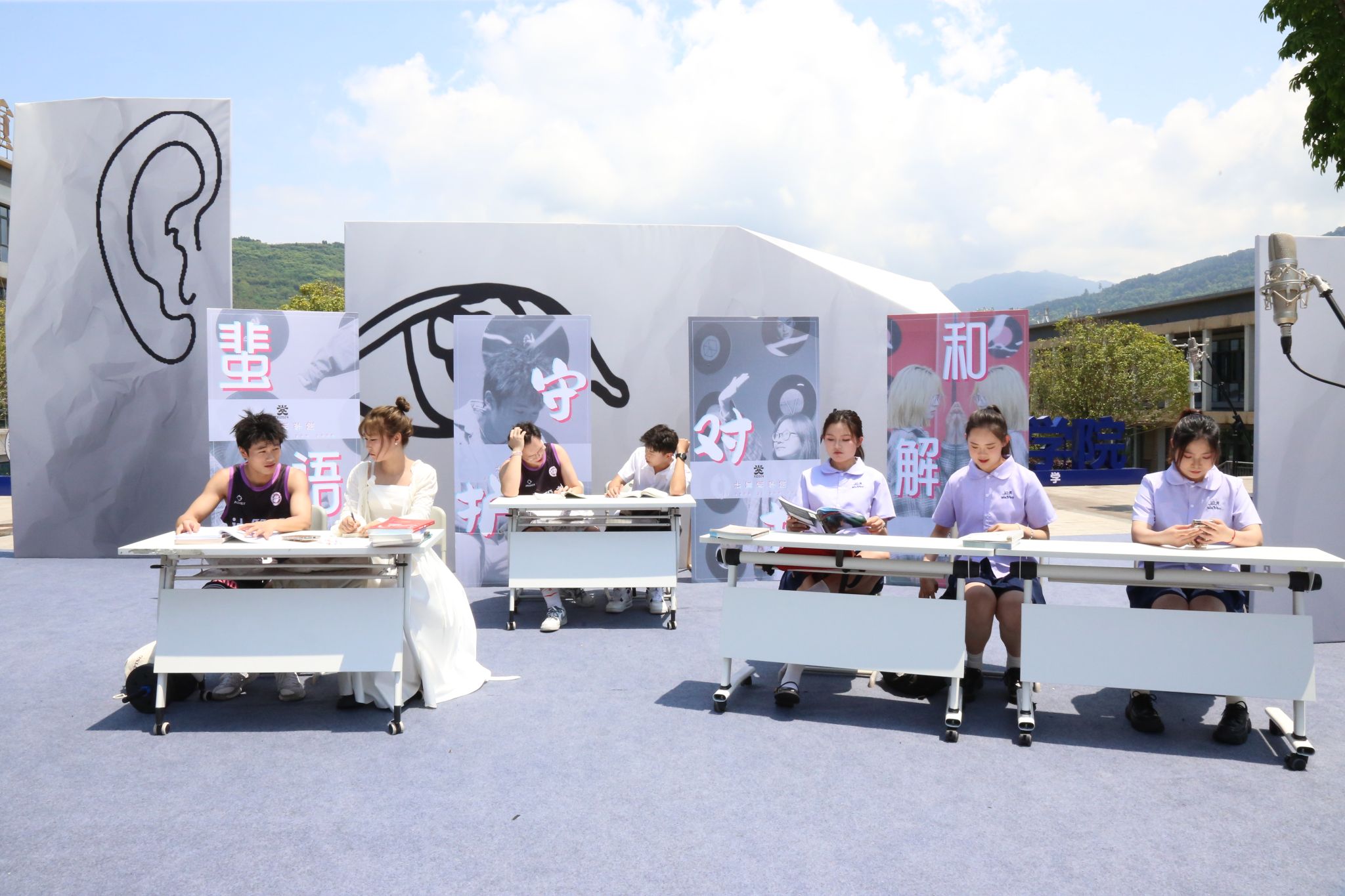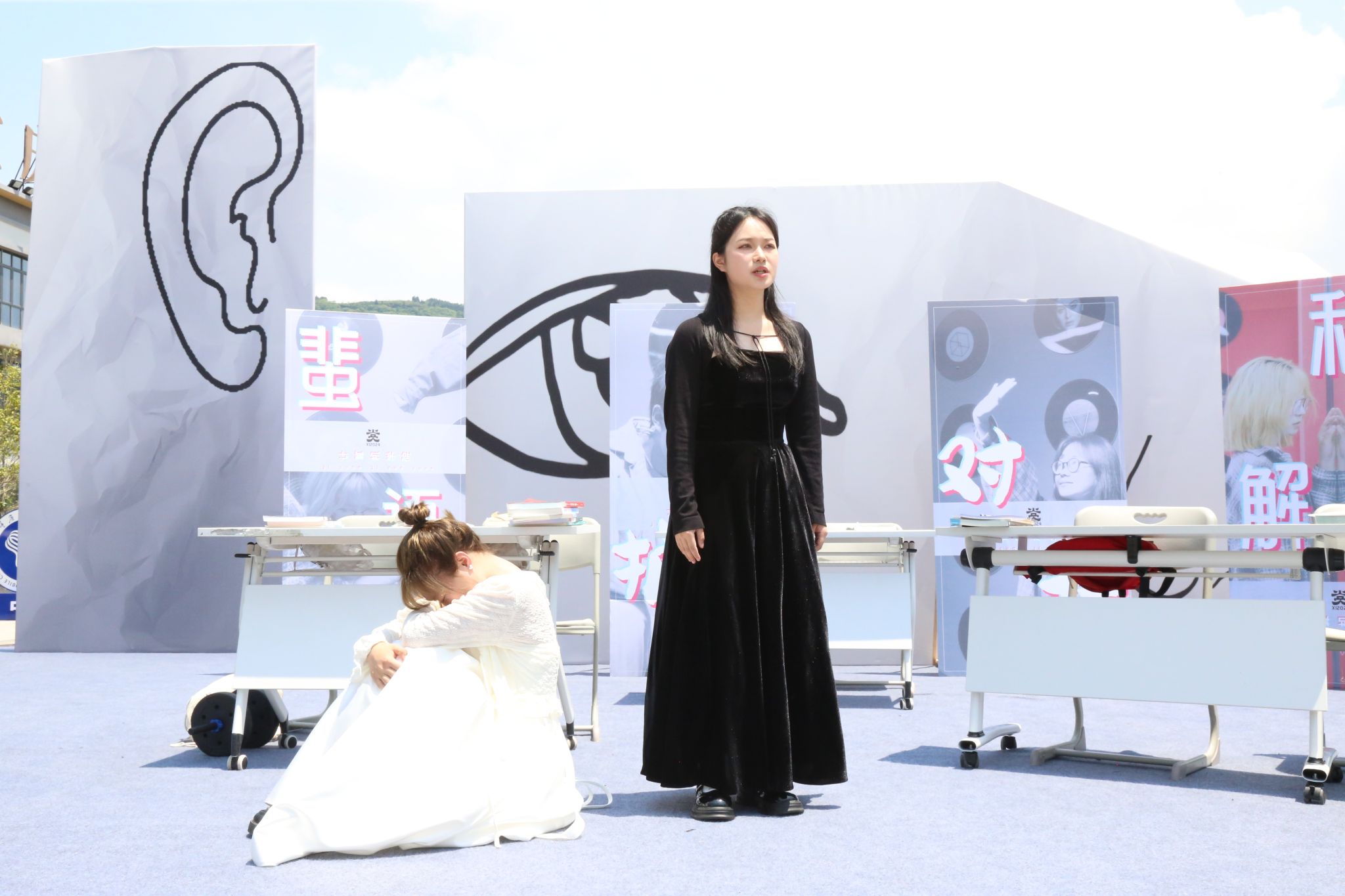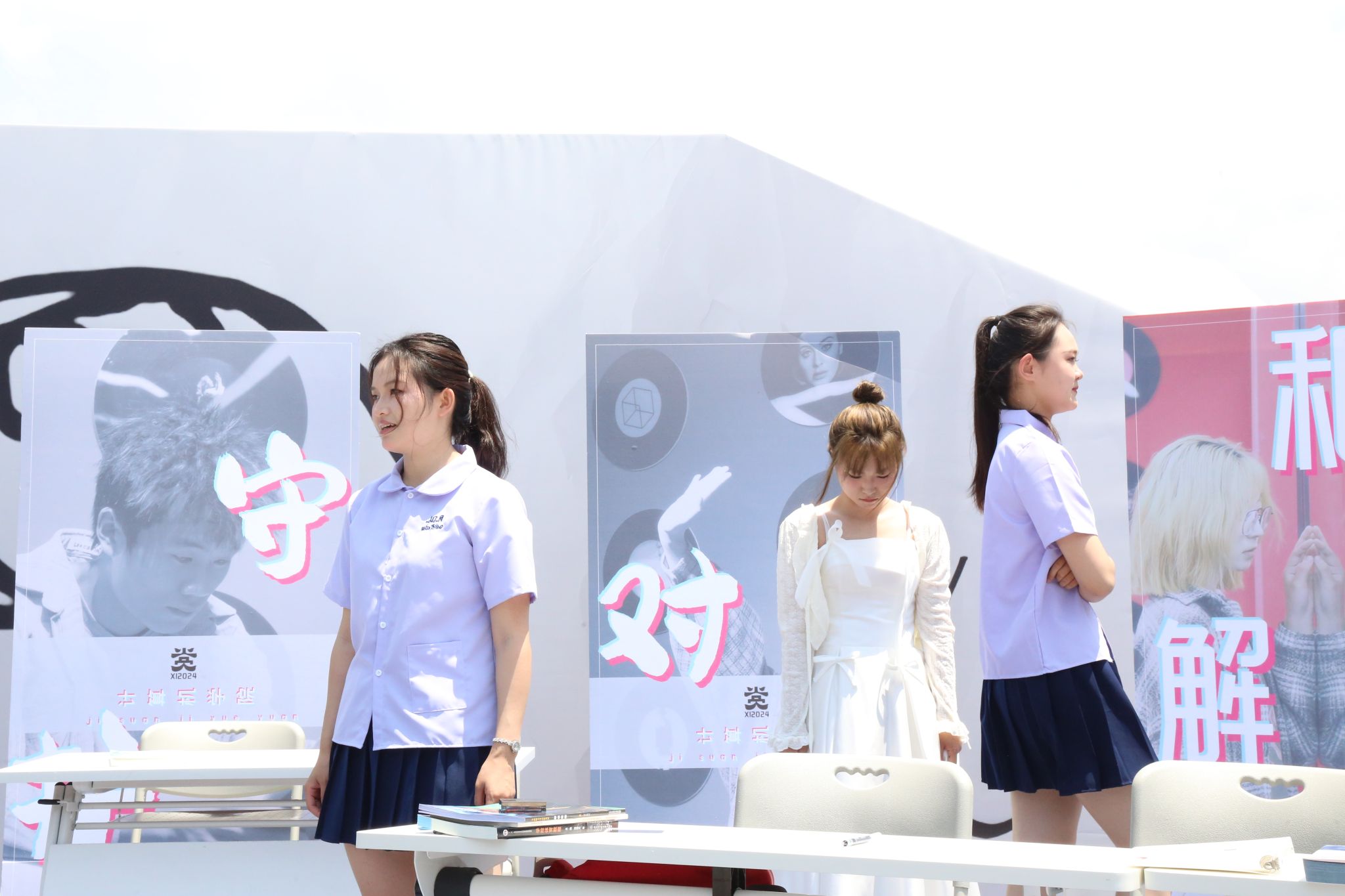 在春意盎然的四月,重庆移通学院綦江校区迎来了一场充满激情与活力的戏剧盛宴——“名角杯”校园戏剧节。这场盛大的活动于4月27日在校园内的图书馆广场情绪空间拉开帷幕,吸引了众多师生的目光。作为此次戏剧节的亮点之一,计算机学院精心打造的青春剧《渡人自渡》在舞台上闪耀登场,为观众们呈现了一场精彩绝伦的演出。