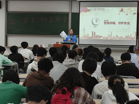 随着五一劳动节的欢乐氛围日益浓厚,为确保广大师生在这个假期中既能享受欢乐,又能确保安全,计算机科学与技术11-16班以及智能科学与技术1-2班的同学们,在辅导员丁滢的精心组织下,于4月24日在行者楼309隆重举行了一场五一安全教育班会。这次班会是一次安全知识的普及,旨在提高我们的安全意识,防范各类安全风险,让我们在欢声笑语中度过一个平安祥和的五一佳节。