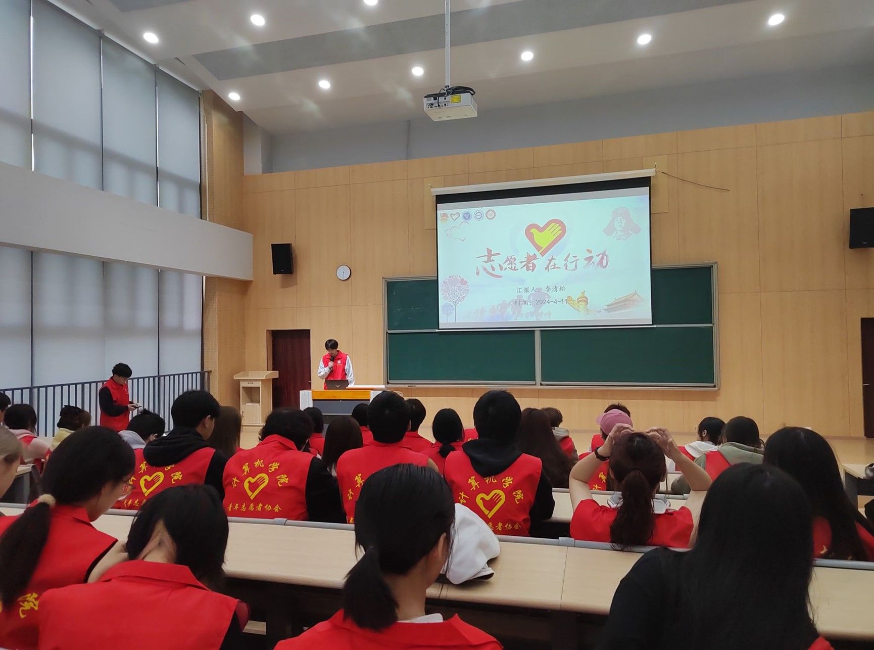 3、活动内容:志愿者,用爱心点亮希望,用奉献温暖人心。为帮助广大的青年志愿者们更好地了解志愿服务活动,理解志愿服务的意义,掌握志愿服务的技巧和方法,提升计算机学院青年志愿者协会全体干事及大一各班团志愿服务板块负责人的志愿服务能力。计算机学院青年志愿者协会协计算机流动服务站志愿服务专项支队于4月11日中午12点30分在玉棠书院阶梯教室,开展了“志愿者在行动”花果初阶班第二期培训。