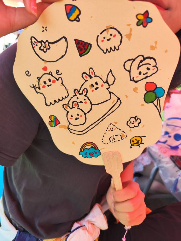 赏戏X“綦綦怪怪”聚集地——“塑”一张戏的“曲”脸谱制作活动上半部分,参与者们通过我们提供的扇子制作模板,完成了扇子的制作。不仅如此,参与的同学也通过自己无限的想象使用各种材料对扇子、面具和杯子进行独特的装饰,例如假花装饰、贴纸妆画等。在完成装饰后,同学们将自己的扇子标上名字,并留在活动现场进行风干。在等待风干的过程中,大家自由活动。通过本次活动,参与者们不仅感受到了艺术的魅力和创作的乐趣,还能一笔一划地勾勒出自己独特的想象力和对艺术的理解。