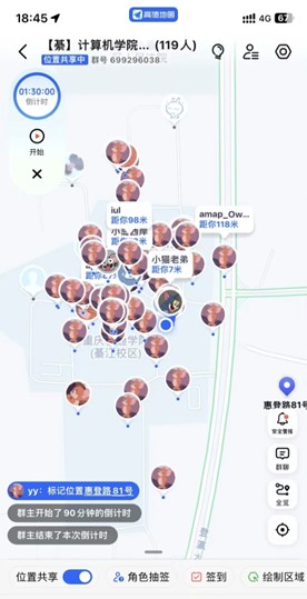 为了增加活动趣味性,活动精心设计了“汤姆猫”和“杰瑞鼠”两种角色,参赛同学抽签决定角色,并以荧光手环、马甲进行标记,在高德地图共享定位的平台支持下,游戏以一种全新的方式展开。
