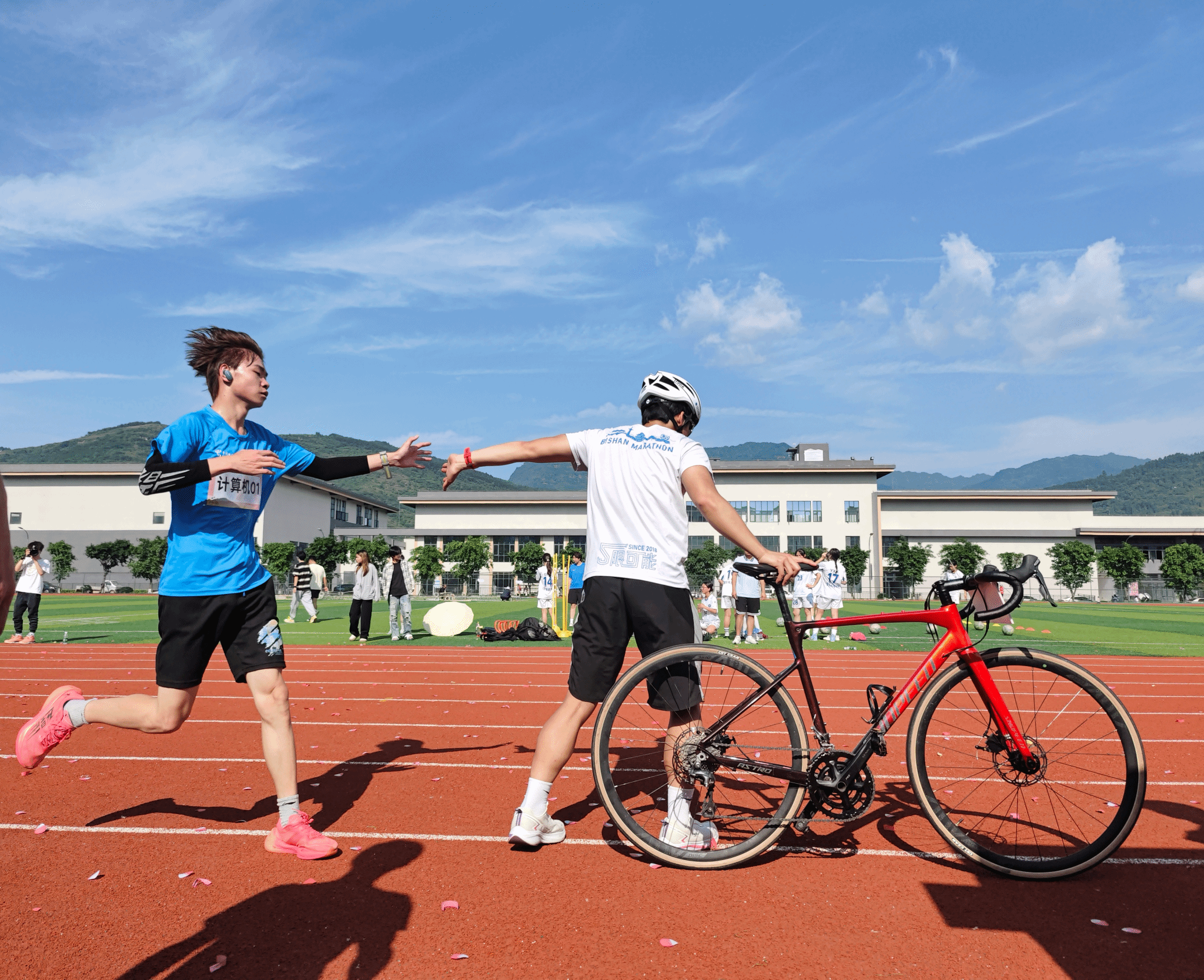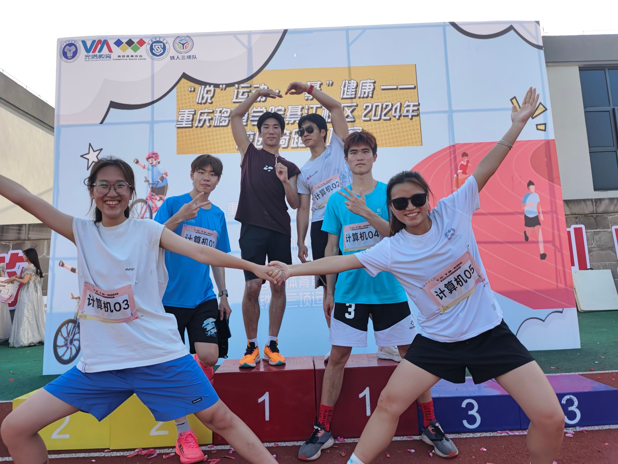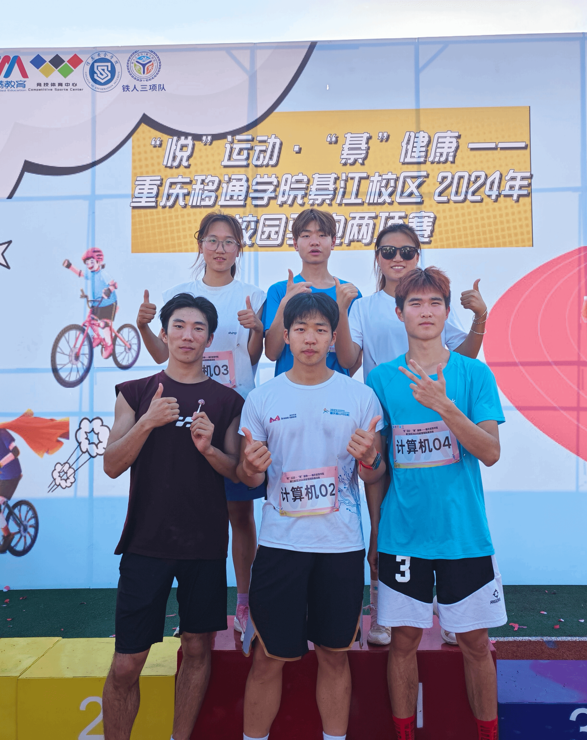 2024年5月15日17:00,计算机学院的运动员们在“悦”运动,“綦”健康——重庆移通学院綦江校区2024年校园骑跑两项赛中,以59分57秒的佳绩喜获冠军!