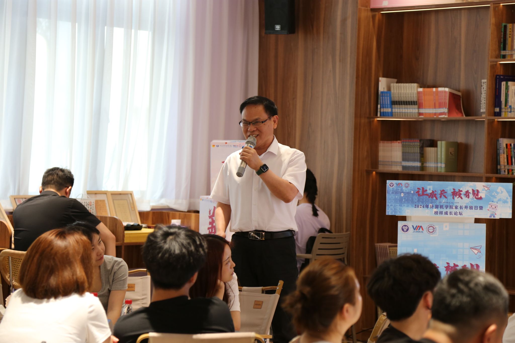 教师代表林泽金从学院专业、人才培养、创新实践和成长历程四个方面展开了学习历程分享,他鼓励:学生时代应该从专业角度出发,结合学校培养理念,鼓励成为专业领域的高情商管理人才。