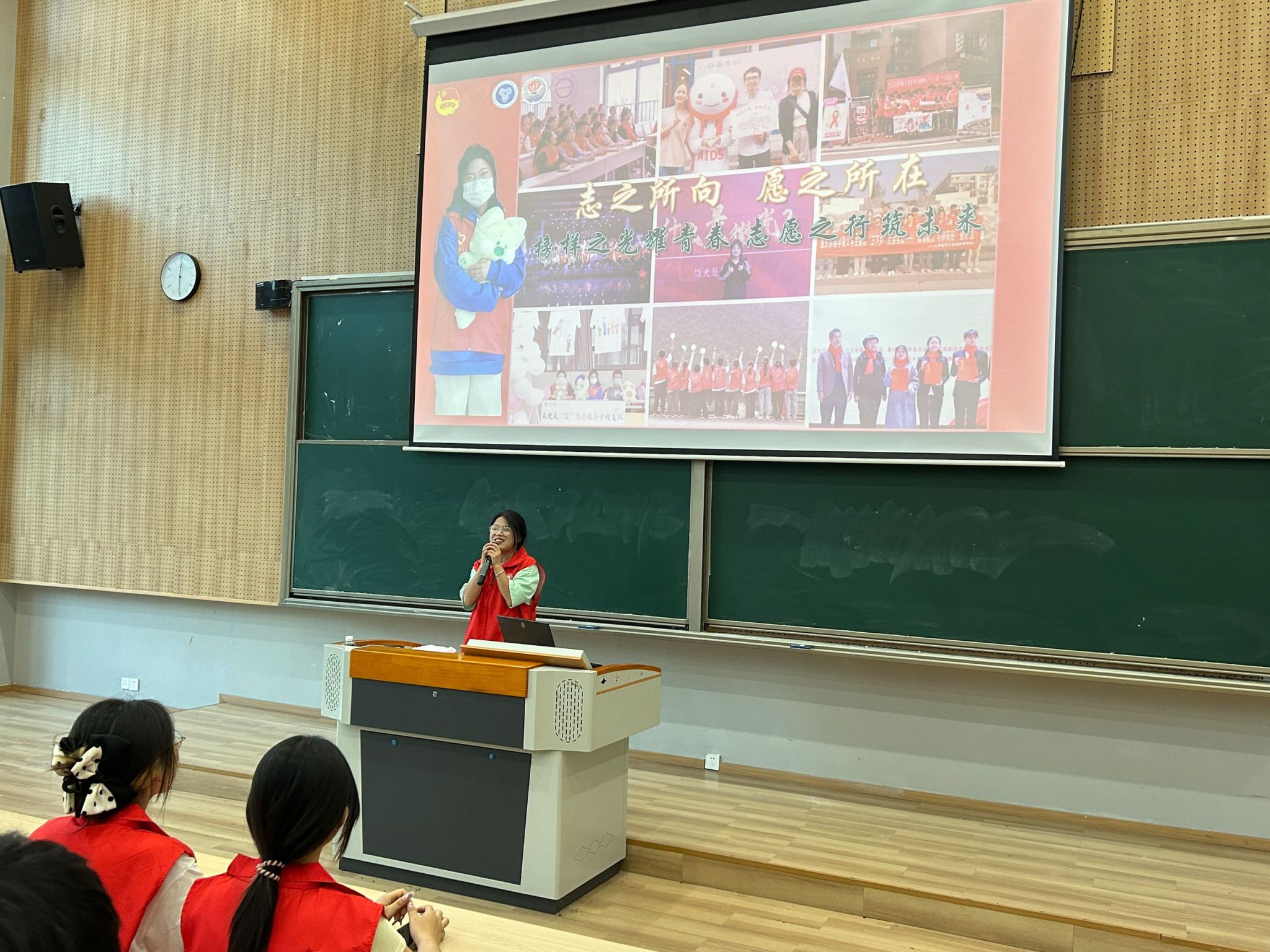 柔和的灯光为阶梯教室增添了温馨的氛围,郭学姐的分享让现场的青年志愿者们仿佛身临其境,感受到了那些充满挑战与收获的美好瞬间。她的每一个故事、每一个选择,都向在座的每一位听众传递出一个信息:青春不仅是年华的绽放,更是责任与担当的践行。