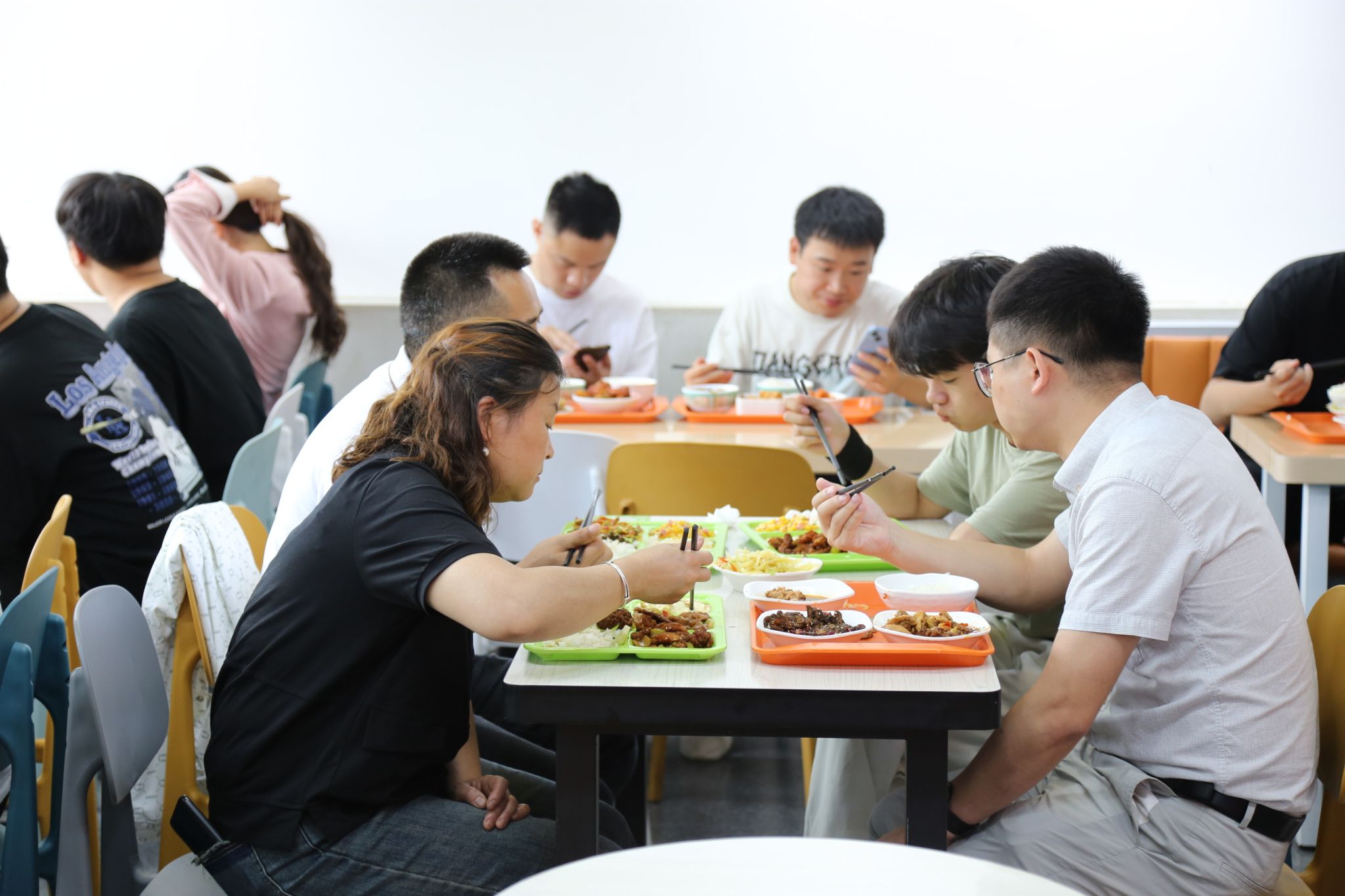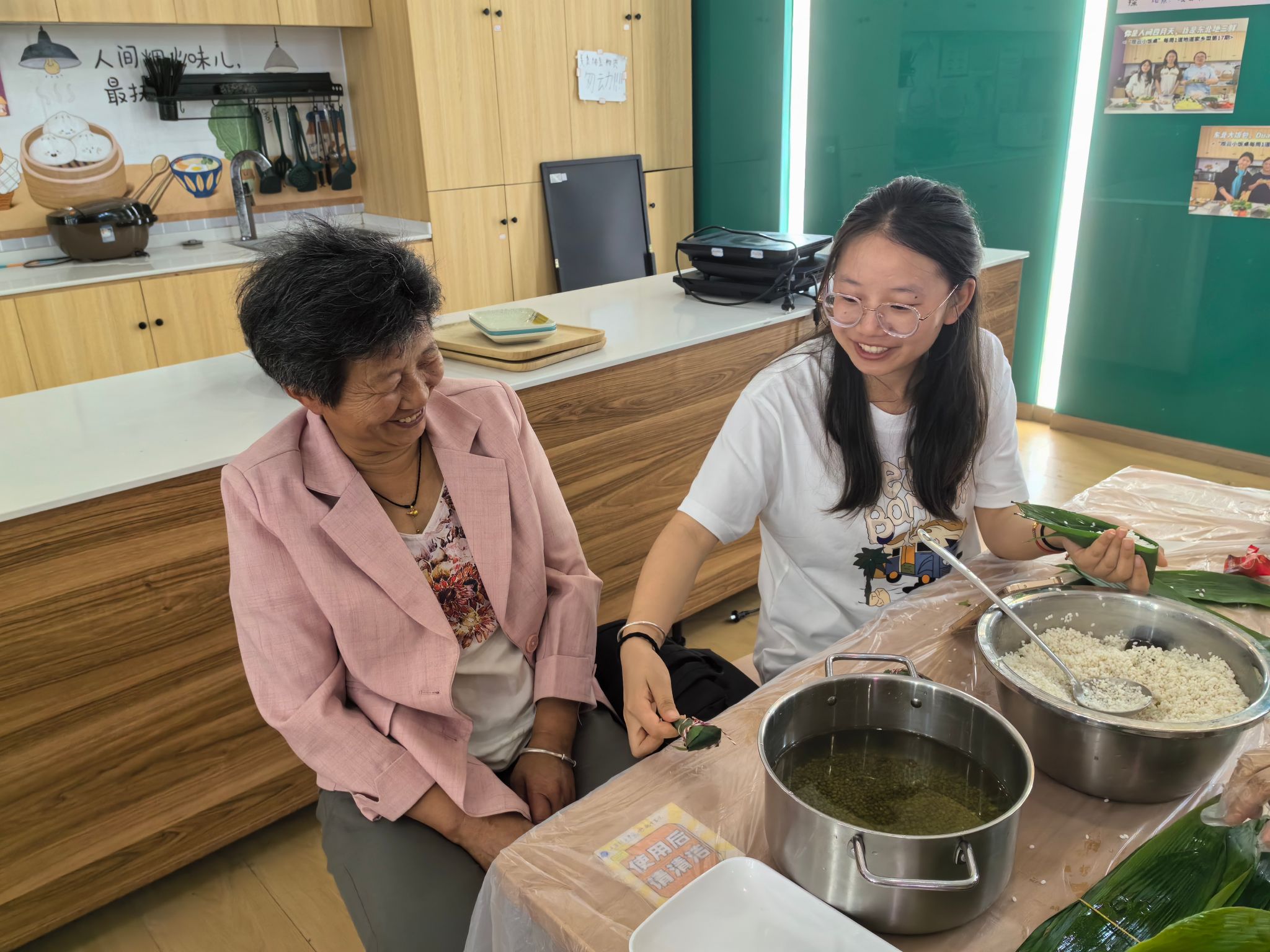 舌尖上的安全,是每一位家长最关心的问题。孩子们在学校的饮食生活情况也备受家长关注,临近中午,志愿者带领学生和家长来到东溪食堂就餐,让家长们亲身体验学生在校的饮食种类和饭菜味道、感受校园食堂环境和卫生状况。老师、家长和同学围坐一桌,有说有笑,在一片欢声笑语中结束午餐。“学校食堂的菜品种类很丰富,饭菜味道和价格都很不错……”一位家长这样说。所幸之事,饱餐与被爱,今日两全。午饭过后,家长和同学们又来到观云书院的谷雨·共享厨房开启一场亲子互动体验,感受包粽子的乐趣。