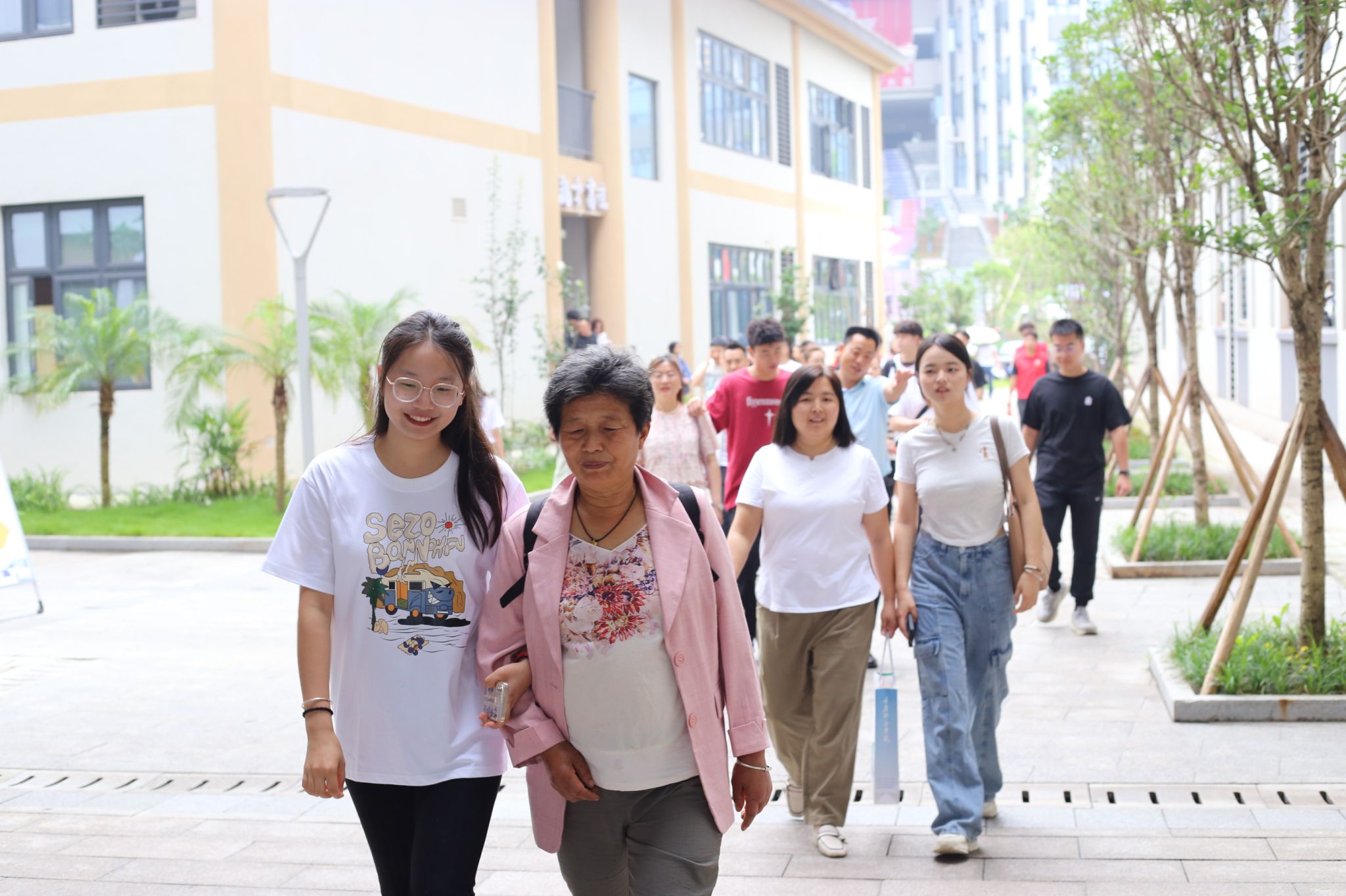 遇见,是家校双向奔赴的故事的开始。上午八时许,家长们带着爱与期望如约而至,在观云书院中庭签到,领取学院精心准备的伴手礼。在这个表达爱意的日子,同学们提前在签到墙上印有自己与家人合照的地方,精心粘贴上写给家长的一封信,通过文字表达平时未能对家长说出的心里话。志愿者更是用拍立得记录下此刻亲子间幸福的笑容,为他们定格一张亲子瞬间!