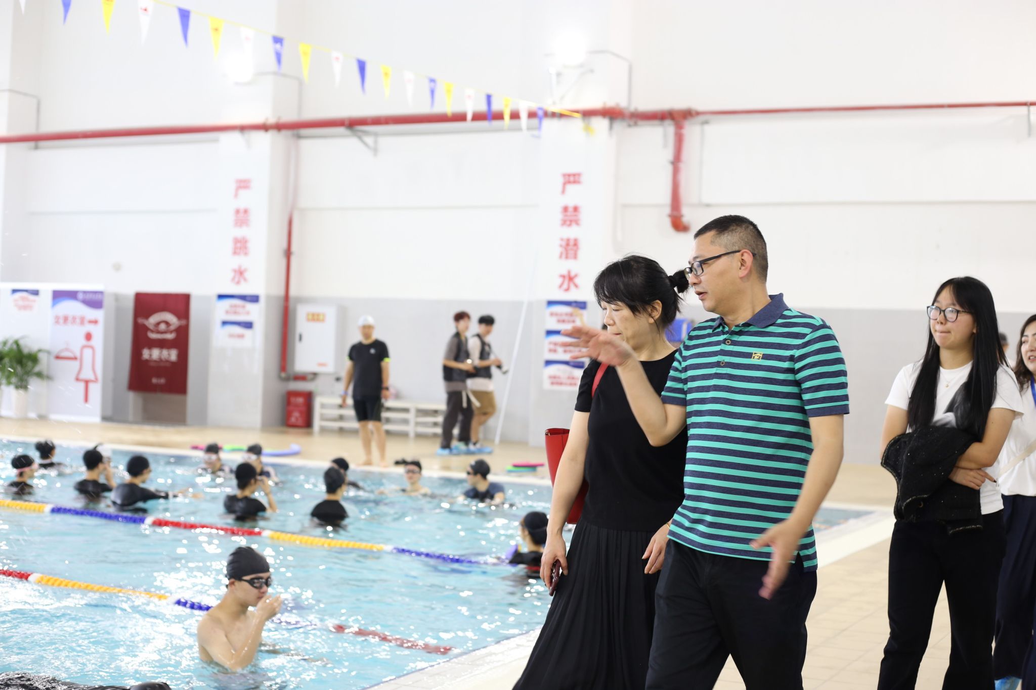 校园是学校独有的育人场域,也是孩子们平时学习、生活和工作的场所。上午九时许,志愿者们带领家长们与孩子一起,走过孩子们在学校走过的路,欣赏这一路的风景。我校作为最体育的非体育大学,提倡学生全员会游泳,家长们参观我校室内恒温“星池·游泳馆”时,同学们正在上游泳课,家长们被这充满青春的画面深深吸引。接着家长们还参观了巨幕电影院、田径场、古剑书院和双体精英产业学院等,家长们纷纷对学校的设施设备以及良好的校园学习环境给予了高度肯定。
