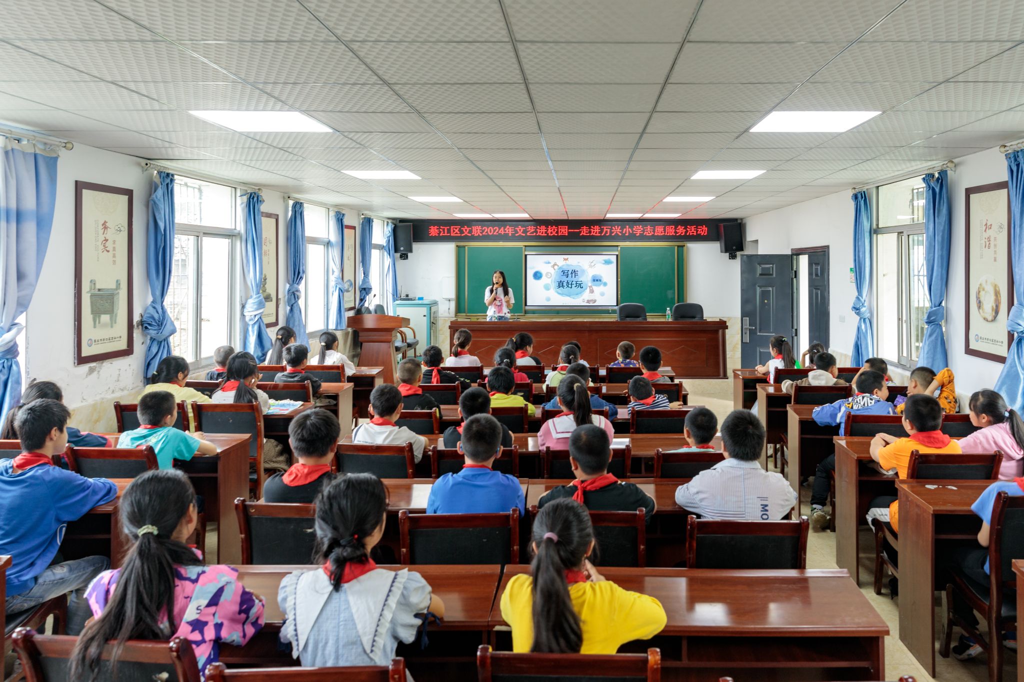 为了让孩子们更加深入地了解摄影艺术,綦江区摄影协会的志愿者们为孩子们带来了一堂生动有趣的摄影课程。他们通过展示精美的摄影作品,讲解摄影技巧,激发了孩子们对摄影的兴趣和热爱。綦江区文联的文艺老师则是在舞蹈教授方面给小学生们带来了专业的指导,带领他们走进儿童文学创作的世界。