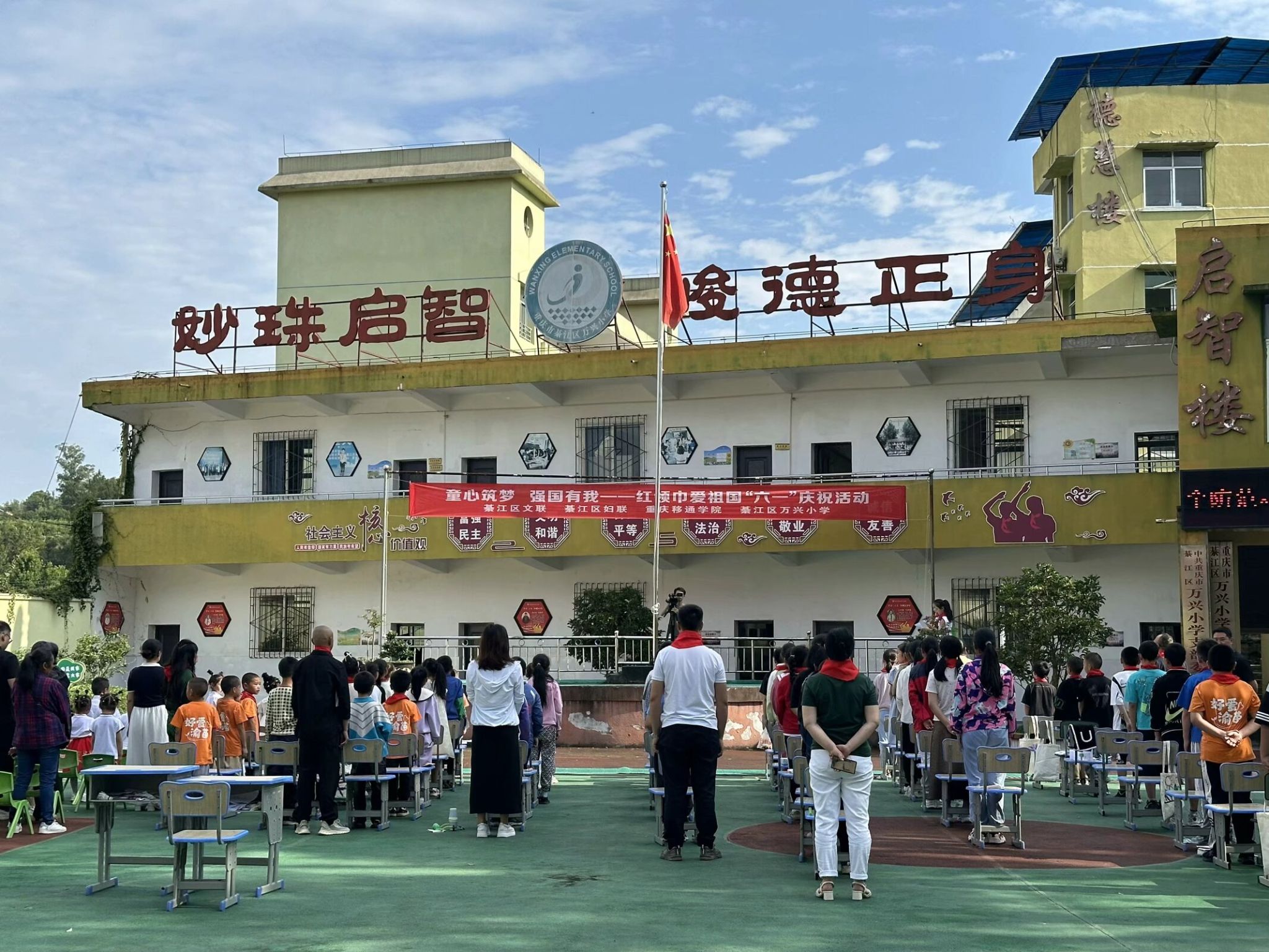5月31日清晨,阳光洒满校园,綦江区万兴小学迎来了一场与众不同的六一儿童节庆祝活动。綦江区文联、綦江区妇联、綦江区摄影协会以及重庆移通学院计算机学院的志愿者们齐聚一堂,陪伴在校的63名留守儿童度过了一个意义非凡的节日。