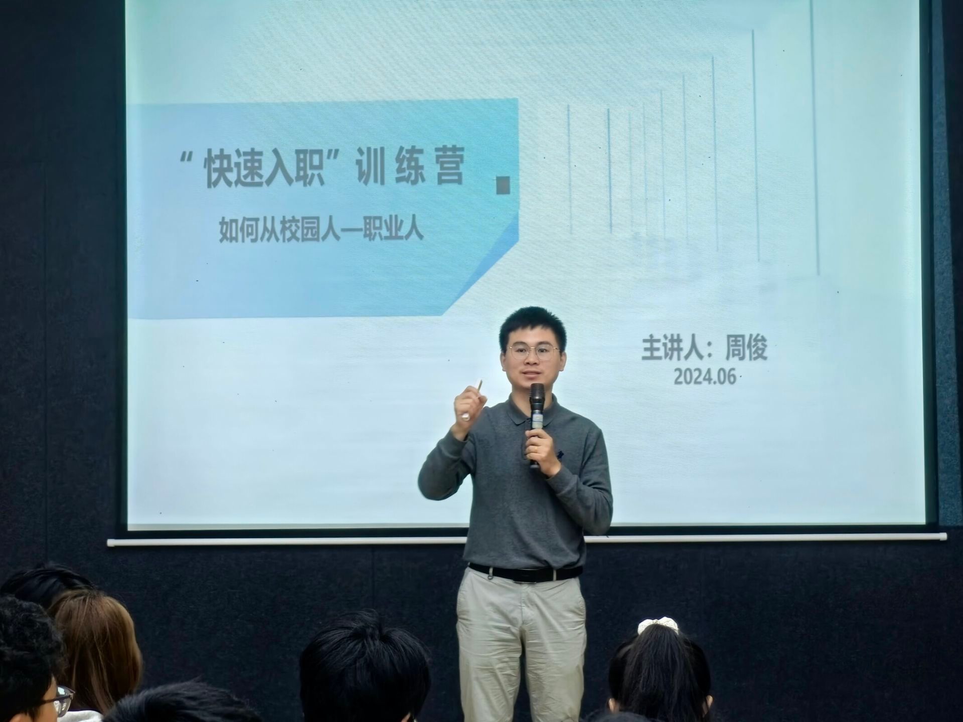 为了帮助即将毕业的同学们了解目前就业市场的形势,精准掌握求职的关键技能,积累面试经验,计算机学院就业创业助理团于2024年6月4日至6月5日承办了綦江校区第8期“快速入职训练营”系列讲座。本次活动有幸邀请到了周俊、童学容、张林、李佳四位资深老师担任主讲嘉宾,围绕“求职分析与优势识别”、“简历制作”、“面试技巧”和“职场礼仪与求职渠道”四个方面展开。
