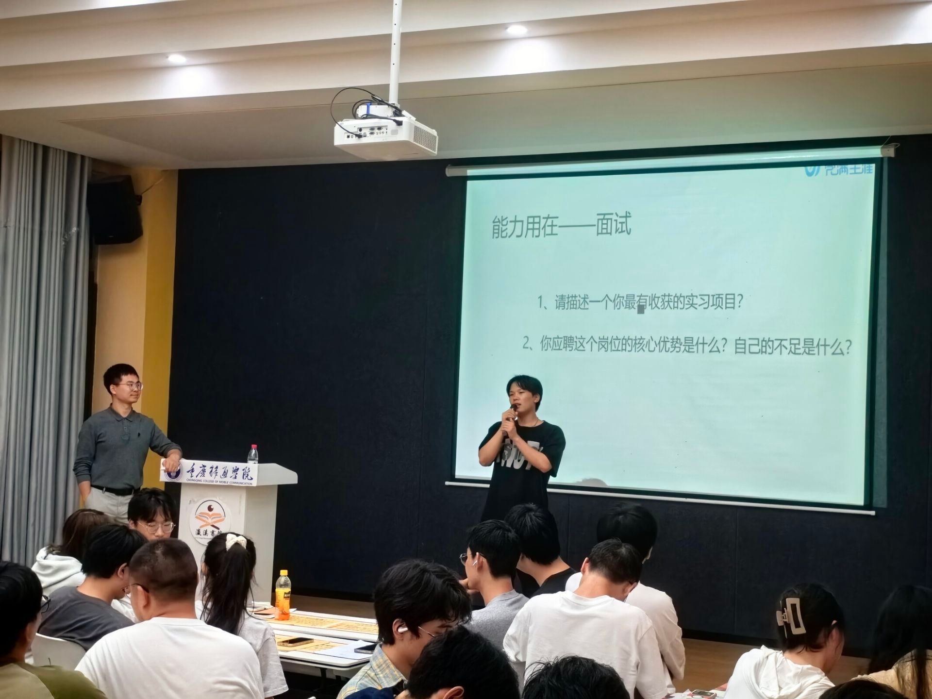在吸收了丰富的求职知识后,接下来便是将理论转化为实践的时候。李佳老师不仅向同学们介绍了众多实用的求职渠道,还深入讲解了进入职场后的处世哲学和职场礼仪。通过李佳老师的分享,同学们获得了宝贵的前辈经验,明白了如何在职场中提升自己的表现和交际能力,为即将到来的职业生涯做好了充分的准备。