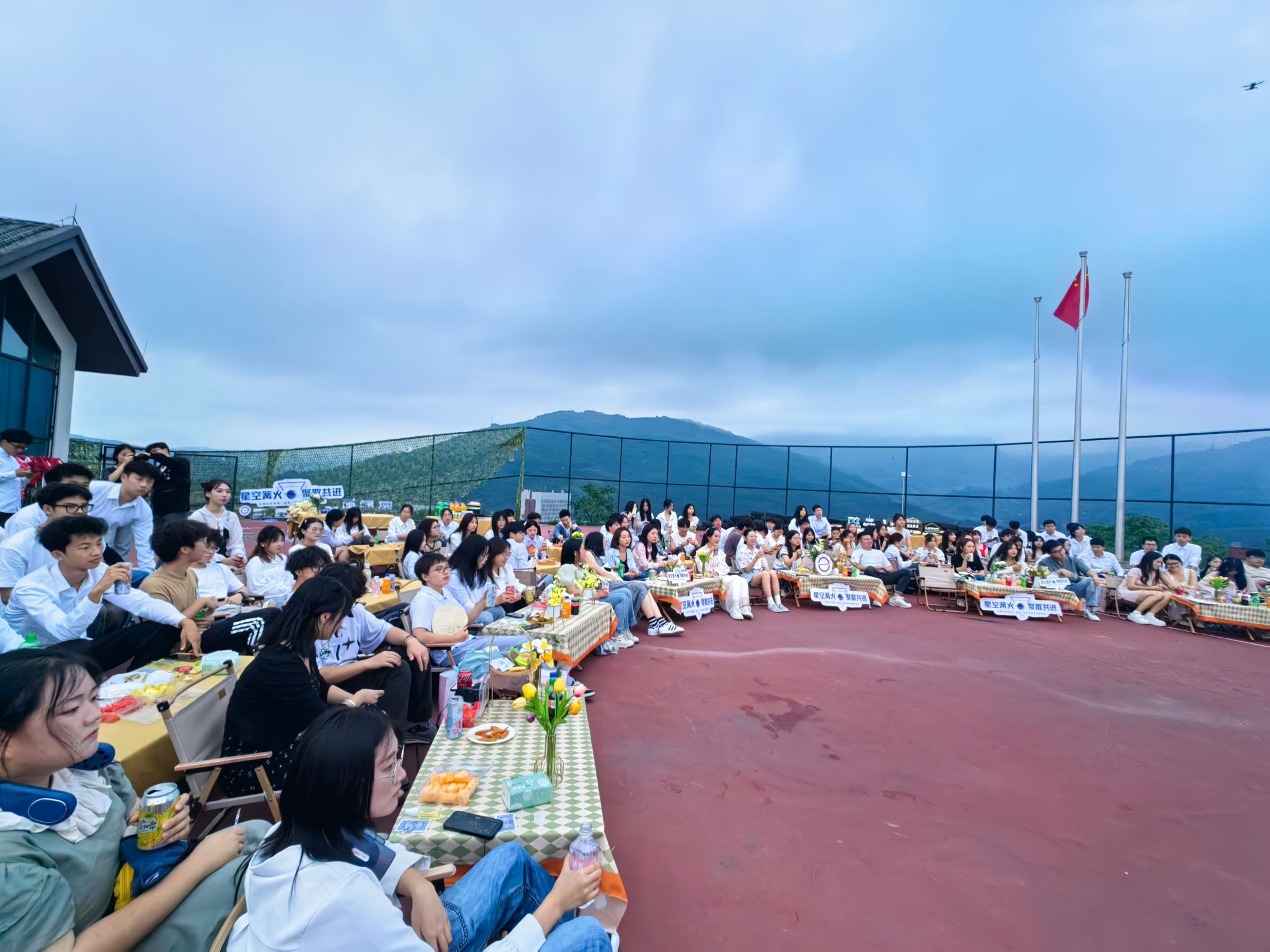 在夏日的余晖中,凉风轻拂,朝霞如诗般温柔地陪伴着即将落幕的酷暑。随着岁月的流转,计算机学院第一届第一任学生组织即将迎来换届的重要时刻。为了庆祝这一盛事,增进团学成员间的友谊与凝聚力,同时回顾过去一年的辛勤付出与收获,计算机学院团总支学生会承办“星空篝火,聚散共进”计算机学院第一届第一任学生组织换届酒会。在2024年6月19日晚上19点半在重庆移通学院綦江校区高空基地举行。本次酒会邀请了计算机学院学工老师们11人及学生组织各部门成员干部干事成员100余人。