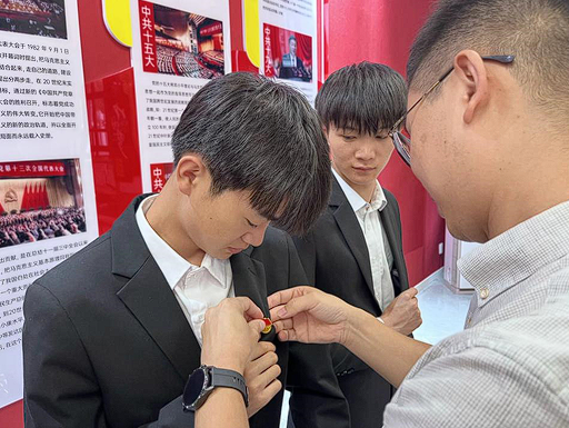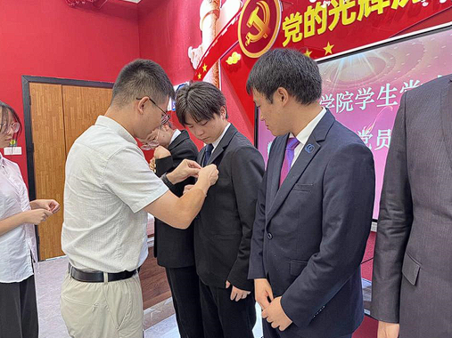 随后,党员大会进入了庄重且有仪式感的环节——佩戴党徽。支部书记周俊同志亲手为每一位本次吸纳的预备党员同志佩戴上了闪闪发光的党徽。这一刻,他们的脸上都洋溢着自豪和喜悦的笑容,心中充满了对党的无限忠诚和热爱。党徽佩戴完毕后,新吸纳的预备党员们纷纷表示,他们将牢记党的恩情,珍惜这份来之不易的荣誉,以更加饱满的热情和更加坚定的信念,投身于党的伟大事业中去,为实现中华民族的伟大复兴贡献自己的力量。这一庄严而神圣的时刻,不仅是对他们个人的肯定和鼓励,更是对全体党员的鞭策和激励。