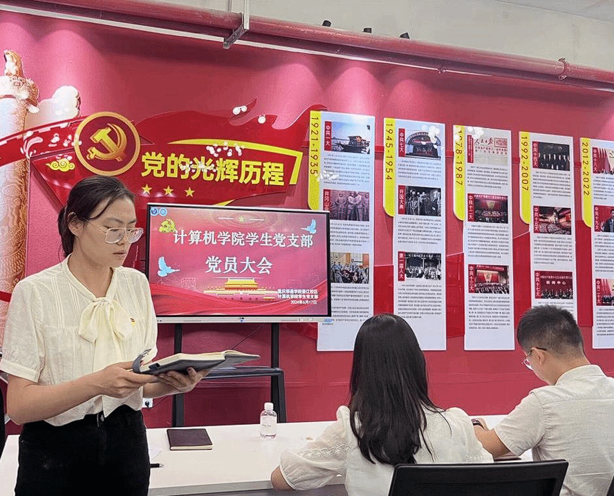 2024年6月21日,计算机学院学生党支部党员大会在庄严而热烈的氛围中于綦河书院党团活动室顺利召开。本次大会旨在审议并接收新的预备党员,同时讨论预备党员的转正事宜。大会严格按照党的组织程序进行,确保了各项议程的顺利进行。
