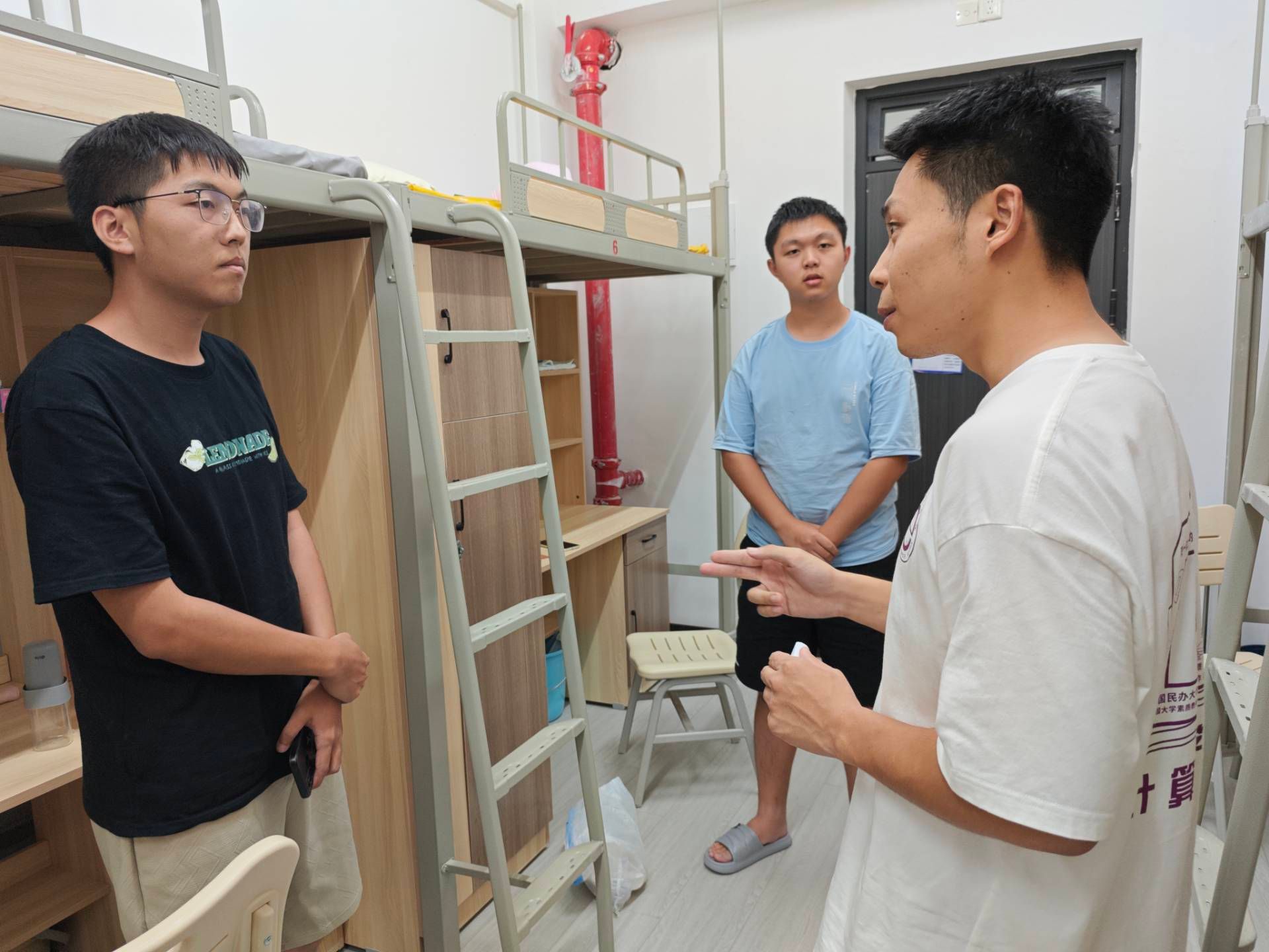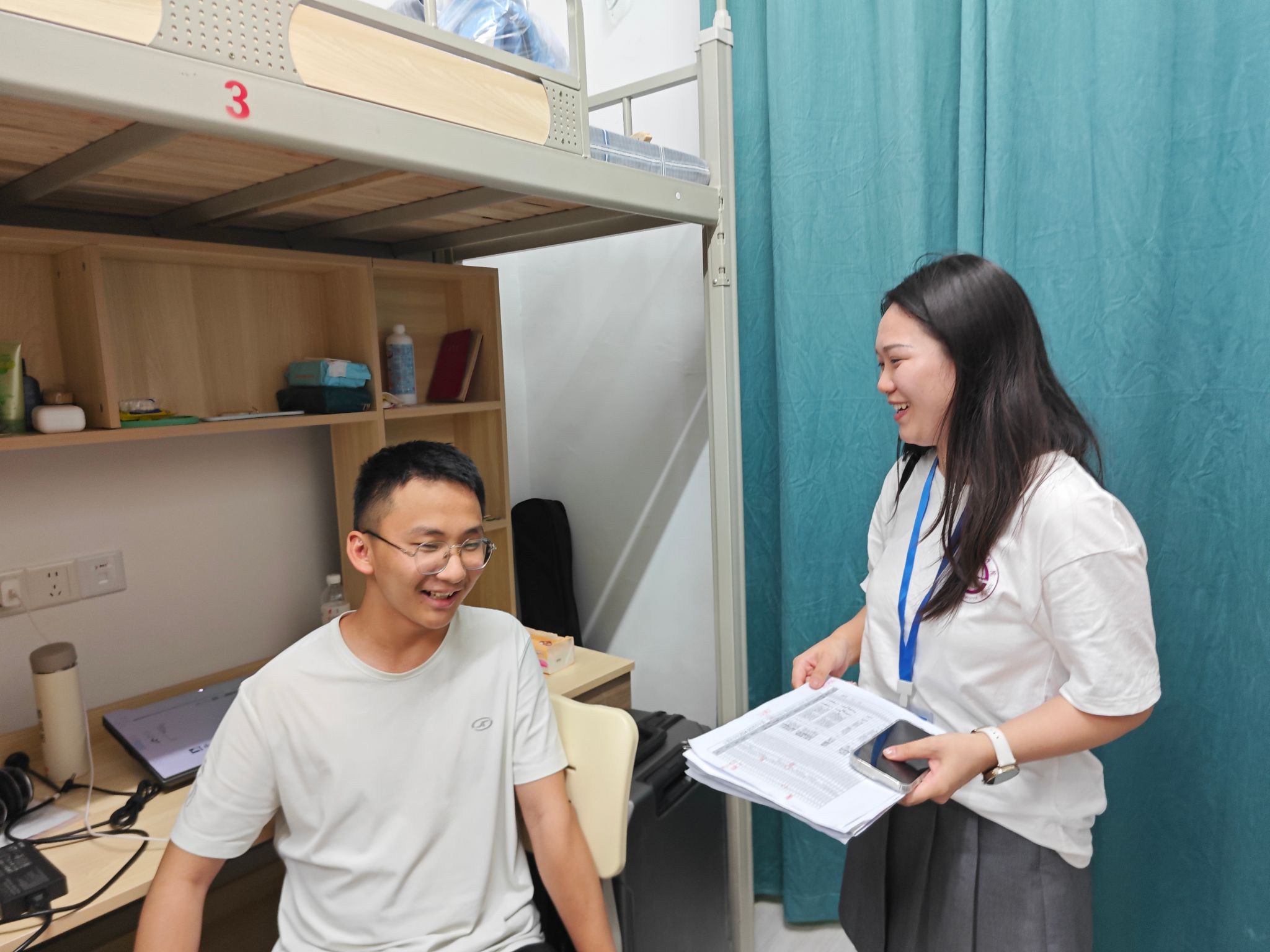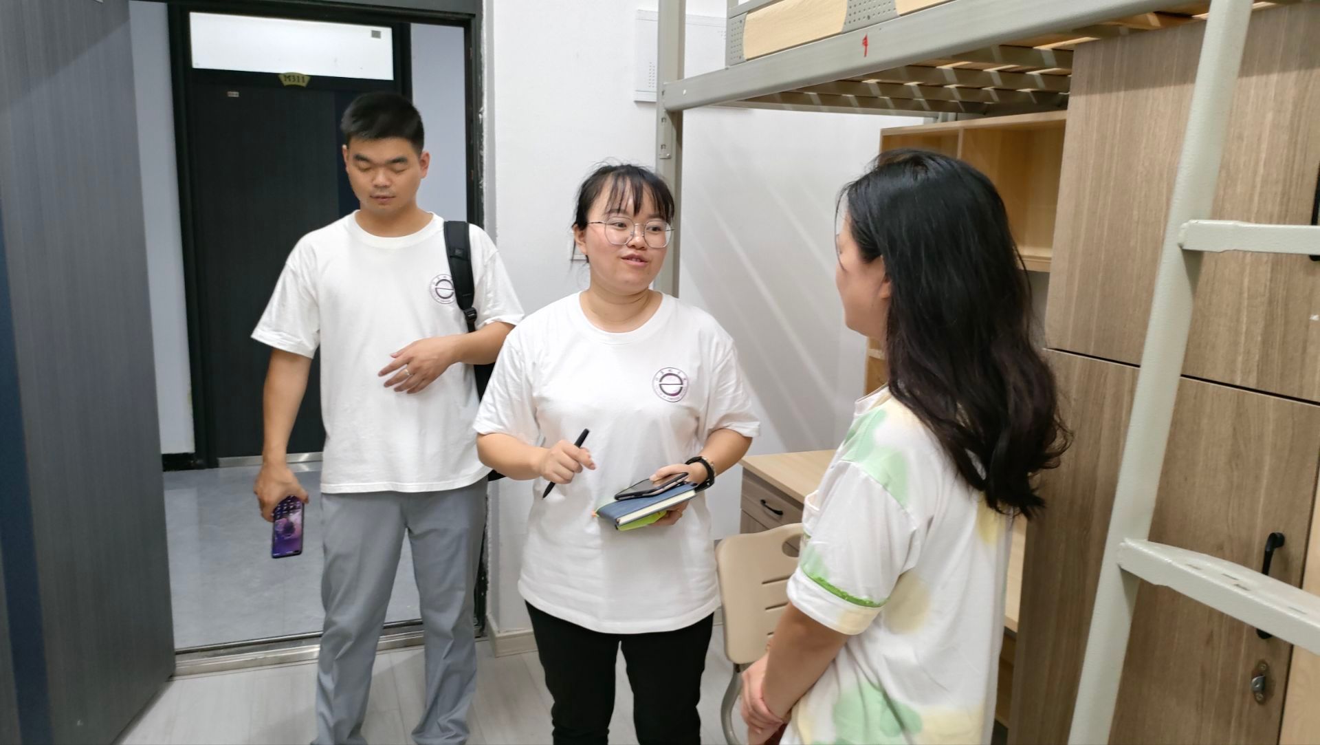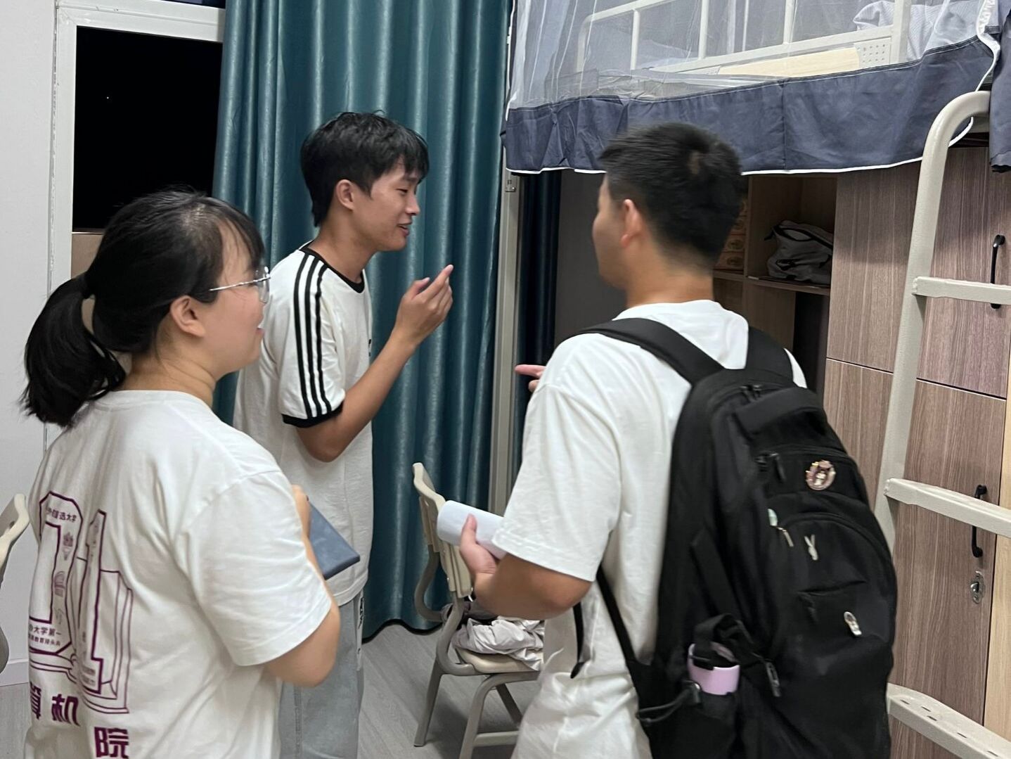 班导师轻轻敲响寝室的门,迎接他们的是一张张略带羞涩却充满期待的脸庞。查寝过程中,学院领导、辅导员以及班导师们认真检查每一个寝室的卫生情况、安全设施,耐心地为新生们讲解宿舍管理规定和注意事项。