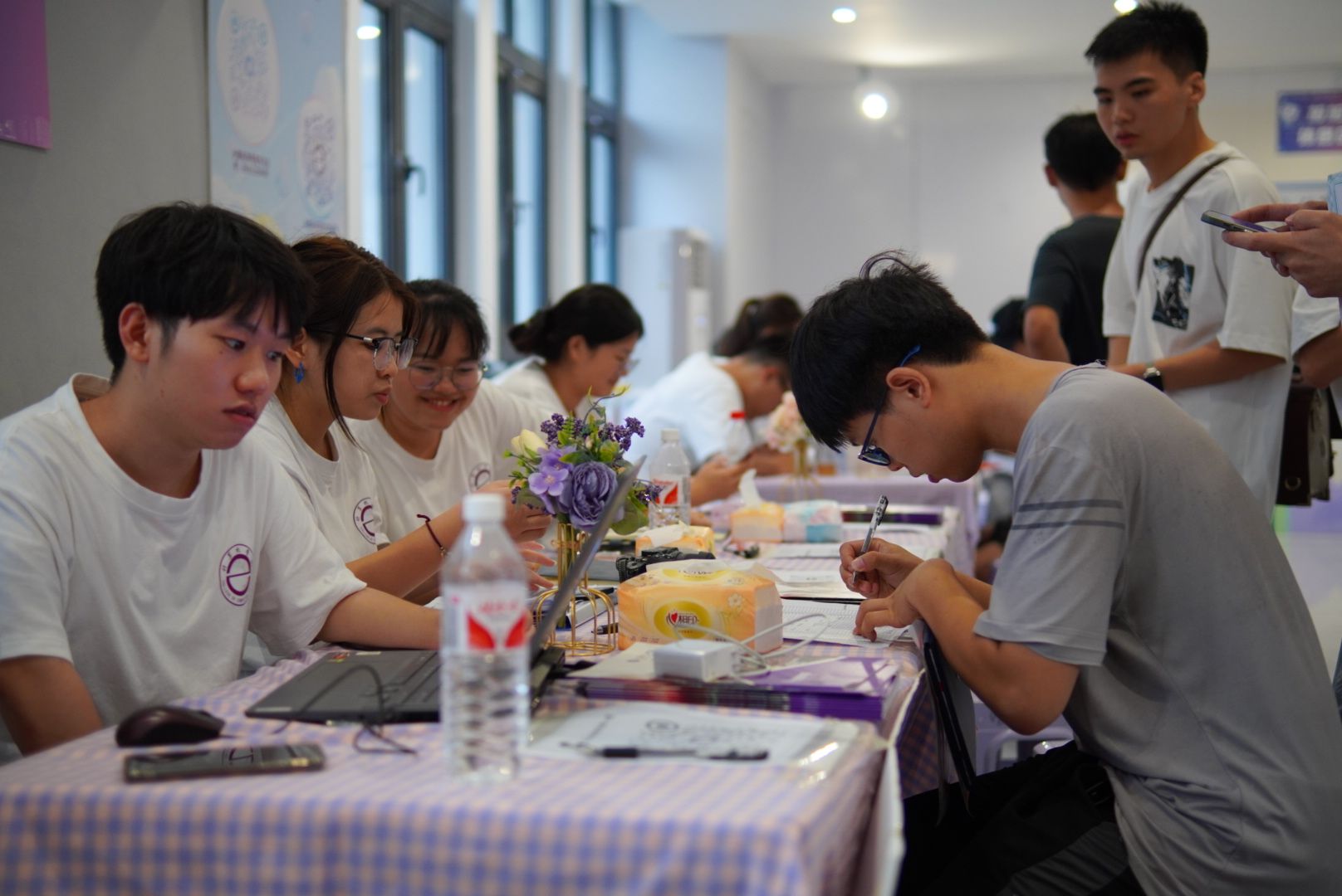 尽管报到当天的气温高达40多度,烈日炎炎,但高温并未能阻挡新生们迈向新学校的坚定步伐。计算机学院的50余名志愿者们顶着烈日,汗流浃背,却依然坚守岗位,他们的身影在烈日下熠熠生辉,如同坚守的灯塔,为新生们指引方向。他们协助专升本新生完成注册登记、宿舍安排等各项事宜,用汗水和热情书写着迎新的华章。