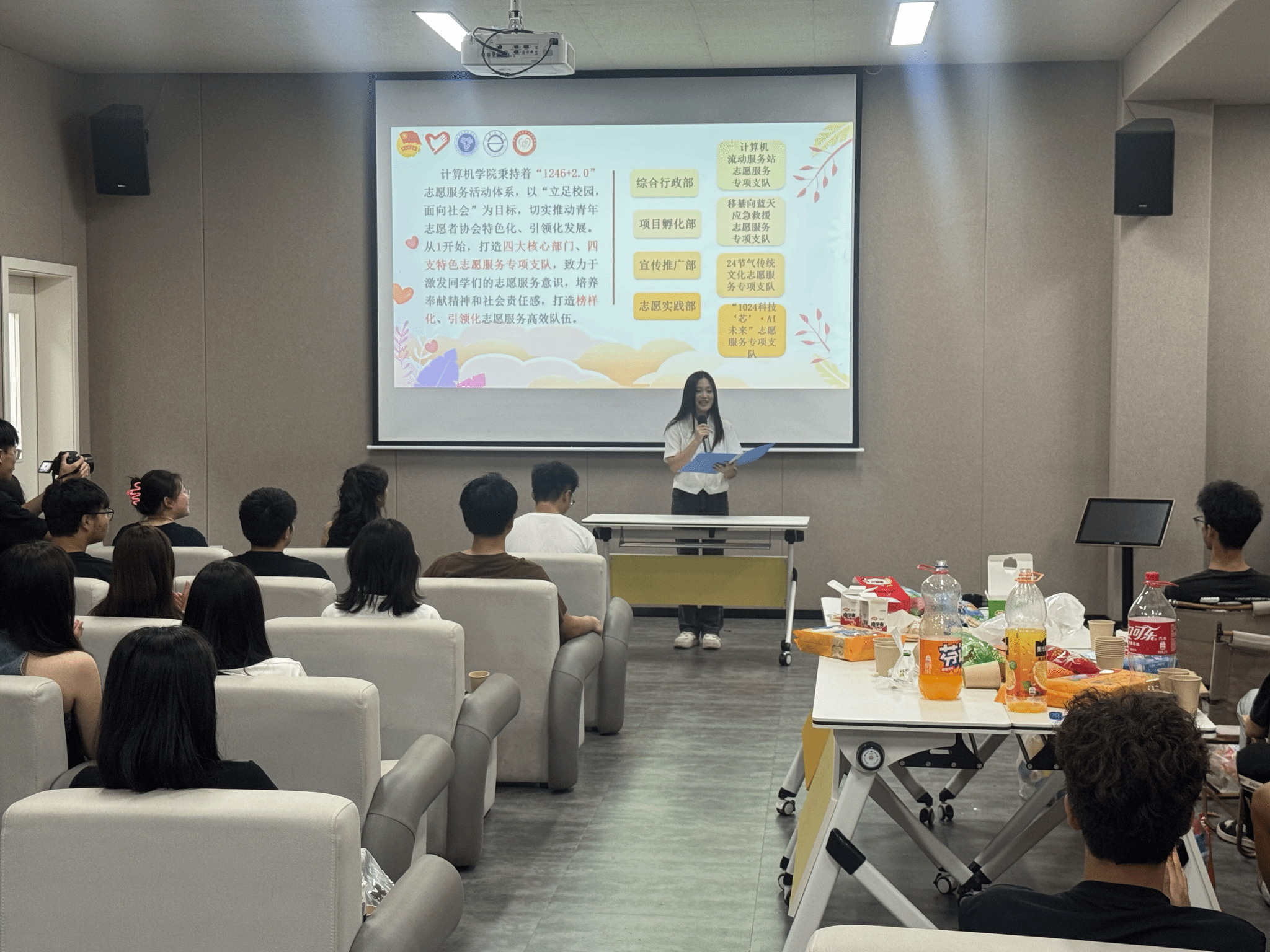 美食的分享,不仅是口腹之欲的满足,更成为了连接心灵。琳琅满目的零食与饮料,如同一条无形的纽带,拉近了大家的距离,不仅让活动现场充满了欢声笑语,更在味蕾与心灵的双重享受中,感受到了青协的温暖与活力,加深了青协成员间的友谊与默契,为今后共同投身志愿服务活动注入了更多的动力和信心。