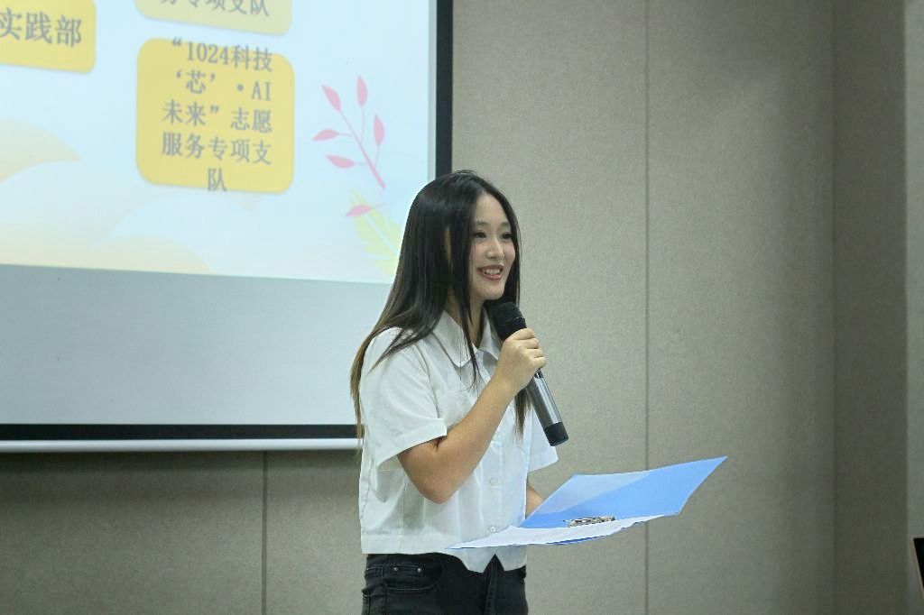 虽然学工副院长周俊因事未能亲临现场,但他通过指导老师周靖鱼传达的致辞,犹如温暖的阳光,照亮了每个志愿者的内心。院长的寄语中,我们不仅了解到了他的志愿服务经历,还学习了作为一名青年志愿者所需要承担的责任和使命。“我们应该如何成为一名优秀的青年志愿者?如何为社会做出贡献?”院长的话语充满了对青年志愿者们的殷切期望和鼓励,犹如灯塔般为青协的未来发展照明了方向。