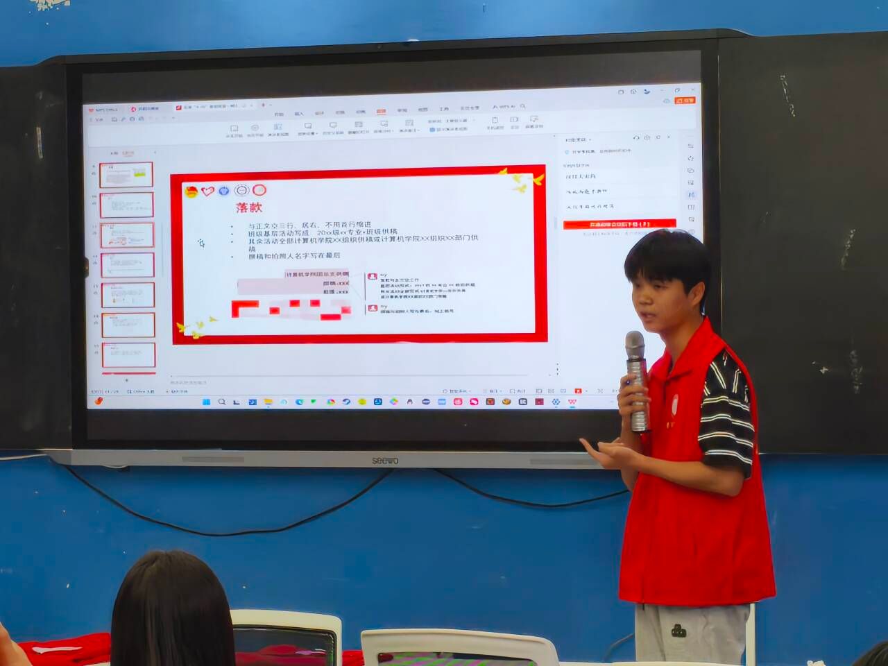 此次活动由院青协宣传推广部主办,1024科技芯·Al未来科普志愿服务专项支队协办从而组织策划开展,面向计算机学院青年志愿者协会全体干事、支队成员及2024级(含专升本)各班团负责人,进行志愿礼仪相关知识和新闻稿撰写的培训,以及最热公益活动的解读。