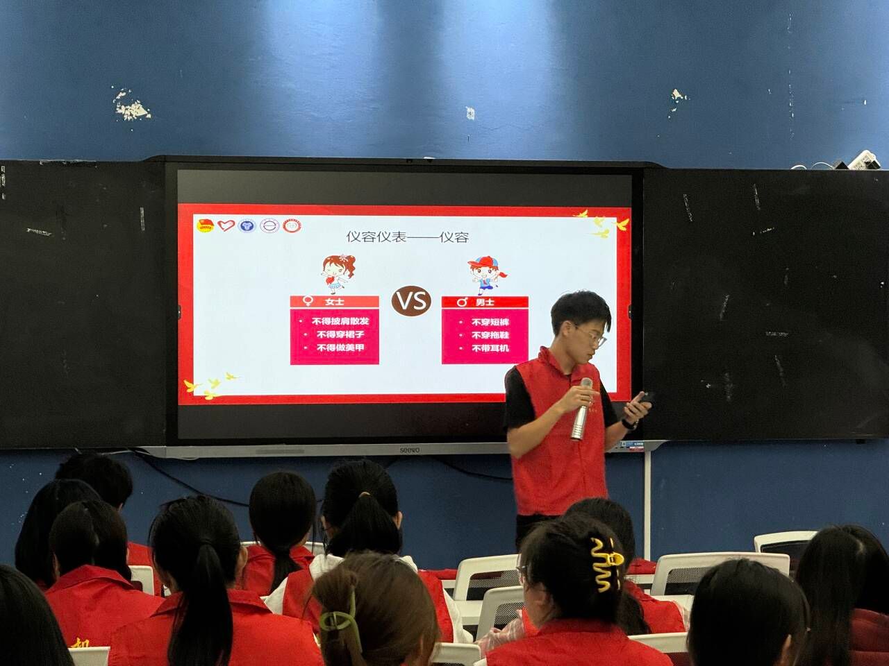 12:20培训准时开始,主持人黄士业对田秋雨主席、青协全体干事、支队成员及各班团负责人的到来表示衷心的问候和欢迎。紧接着,培训的第一项,由宣传推广部部长陈少华同学为大家进行志愿礼仪方面的讲解。陈部长就“着装”“言语”“内在精神”等方面做出详细介绍,指出志愿者在进行志愿服务时所必备的要求,引导志愿者们清楚志愿的内核,加深对志愿事业的认同感。