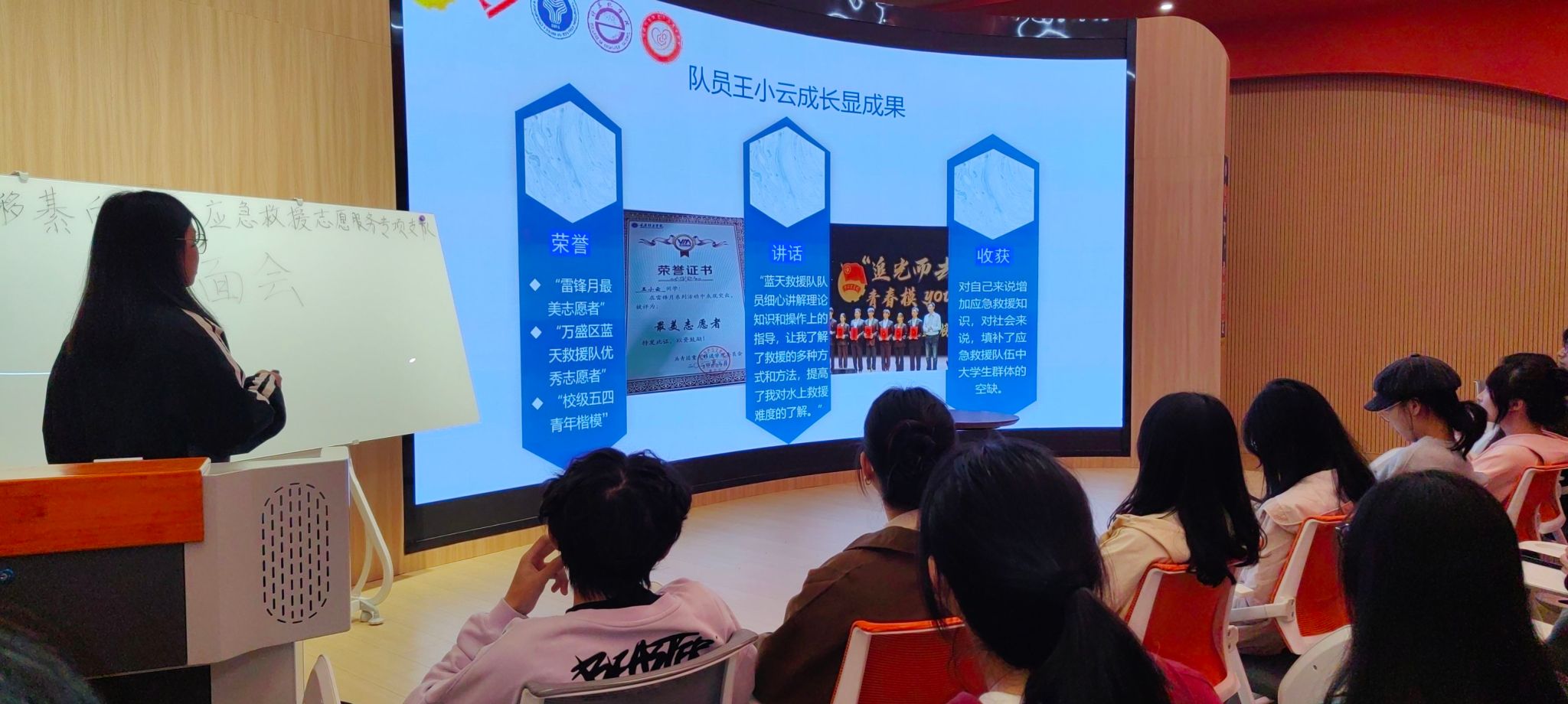 见面会在一派热烈而欢快的氛围中拉开序幕。新成员风采展示环节,他们逐一登台,以简短却掷地有声的自我介绍,展现了各自的活力与热情,为支队注入了崭新的生命力。接着登场的是老成员叶双双和严丹,她们深情回顾往昔,生动讲述自己在支队做志愿服务点点滴滴,酸甜苦辣咸的经历,使新成员们深刻感受到了应急救援工作的意义和重要性。