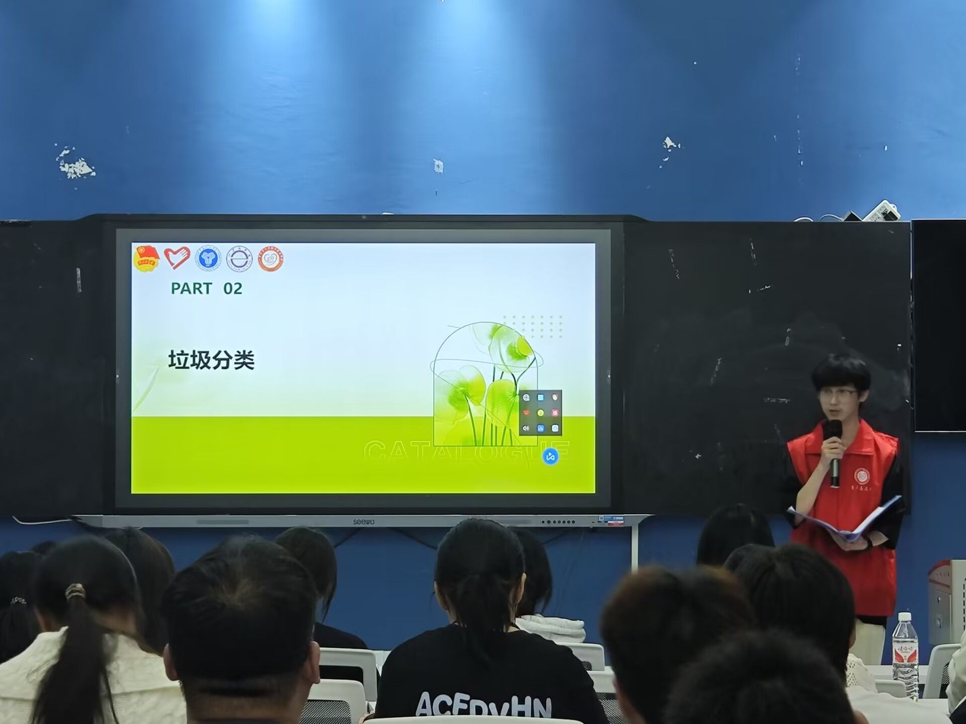 积极参与垃圾分类和环保行动,用实际行动践行绿色理念,共同创造美好未来。 此次垃圾分类宣讲会的成功举办,不仅提高了同学们的环保意识,也为校园垃圾分类工作的推进奠定了坚实的基础。相信在同学们们的努力下,越来越多的同学将加入到垃圾分类的行动中来,共同为建设美丽校园贡献自己的力量。