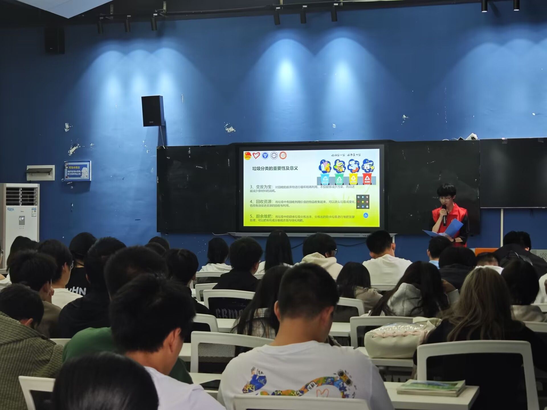2024年10月17日,在綦河书院二号楼中的智慧教室内,一场别开生面的垃圾分类分类宣讲会顺利举行。此次活动是由计算机学院青年志愿者协会携手2023级计算机科学与技术11班班团共同举办,旨在通过宣讲和互动,进一步促进同学们的的环保意识,推动垃圾分类在校园内的普及。