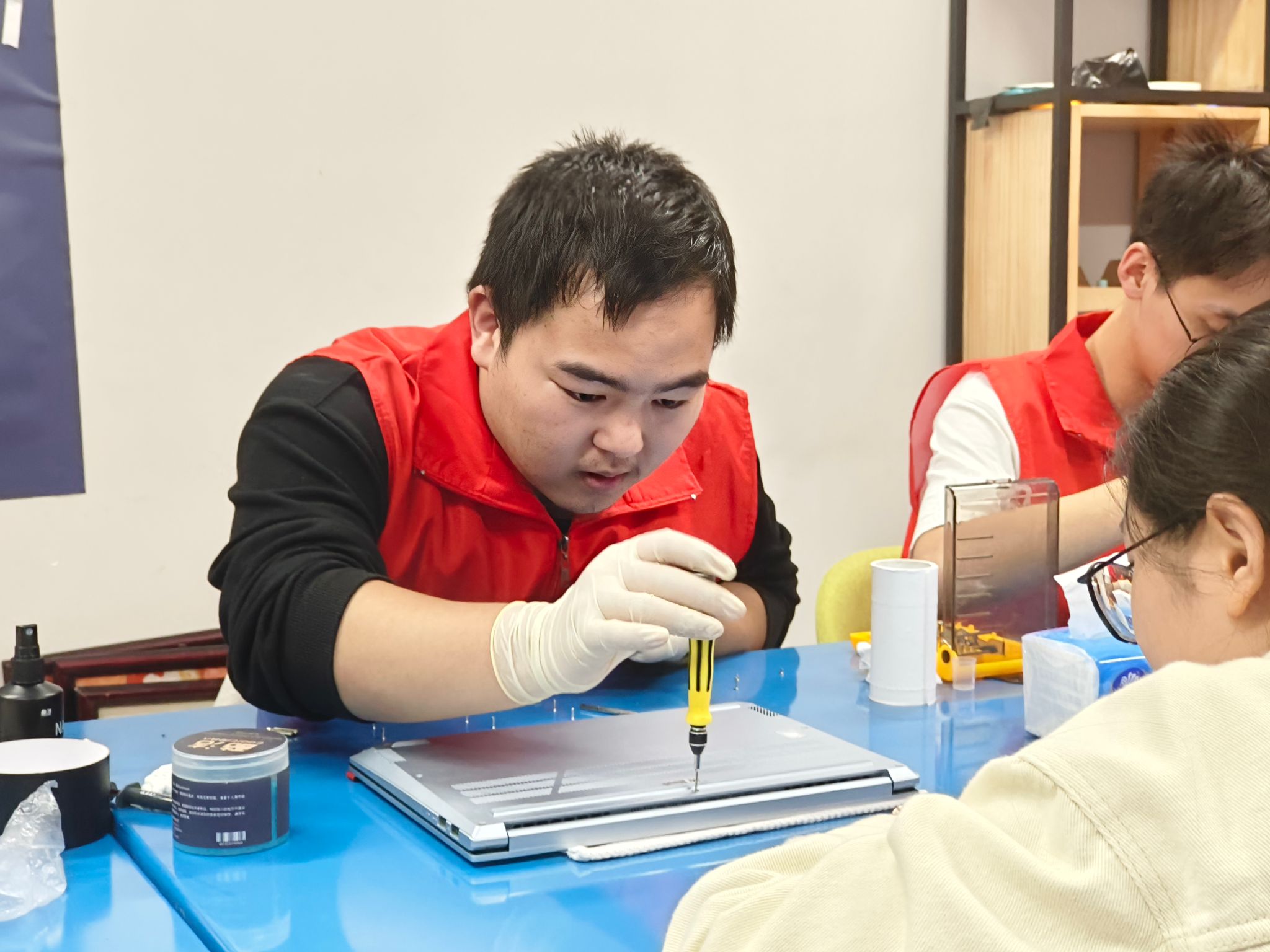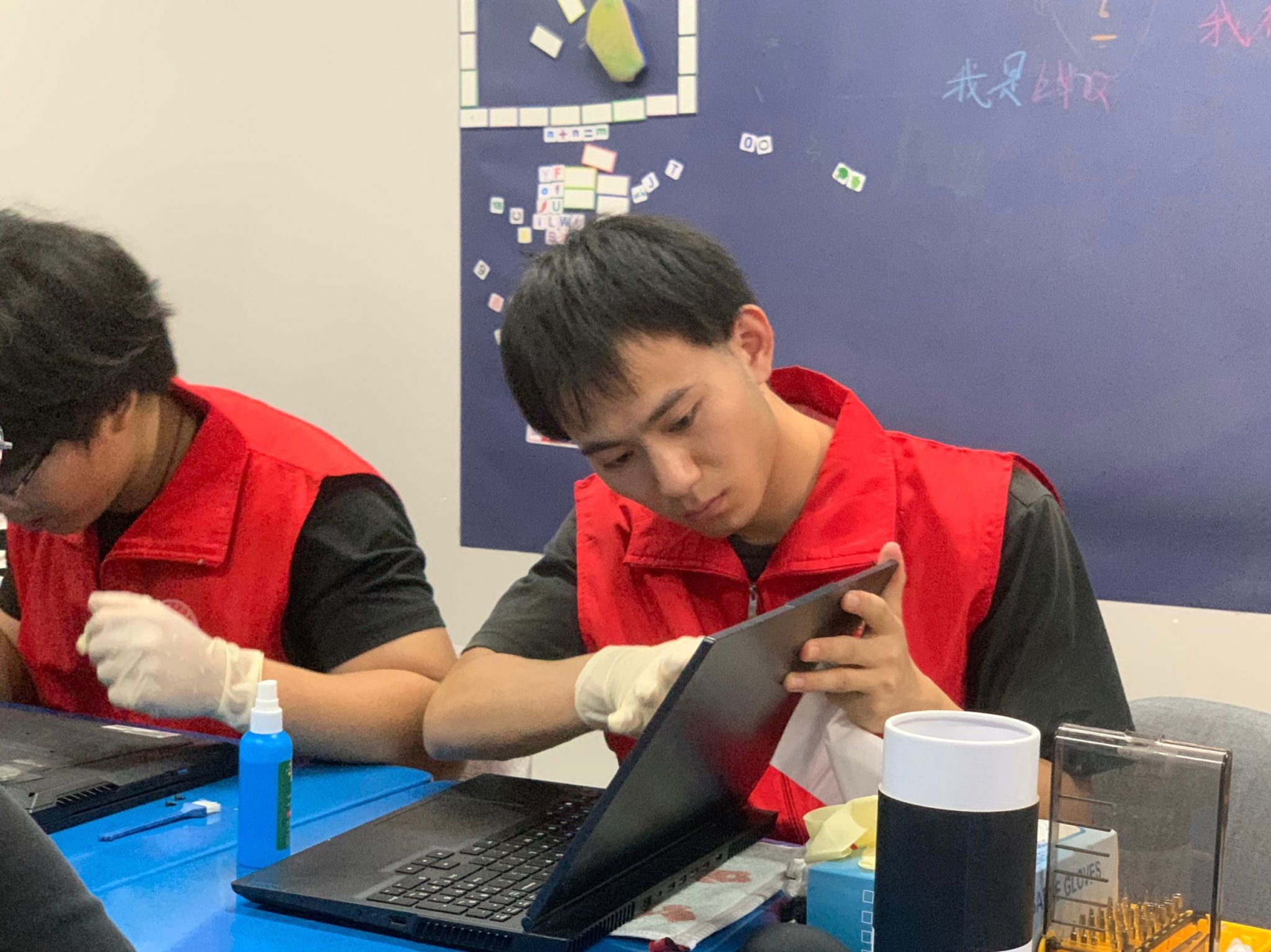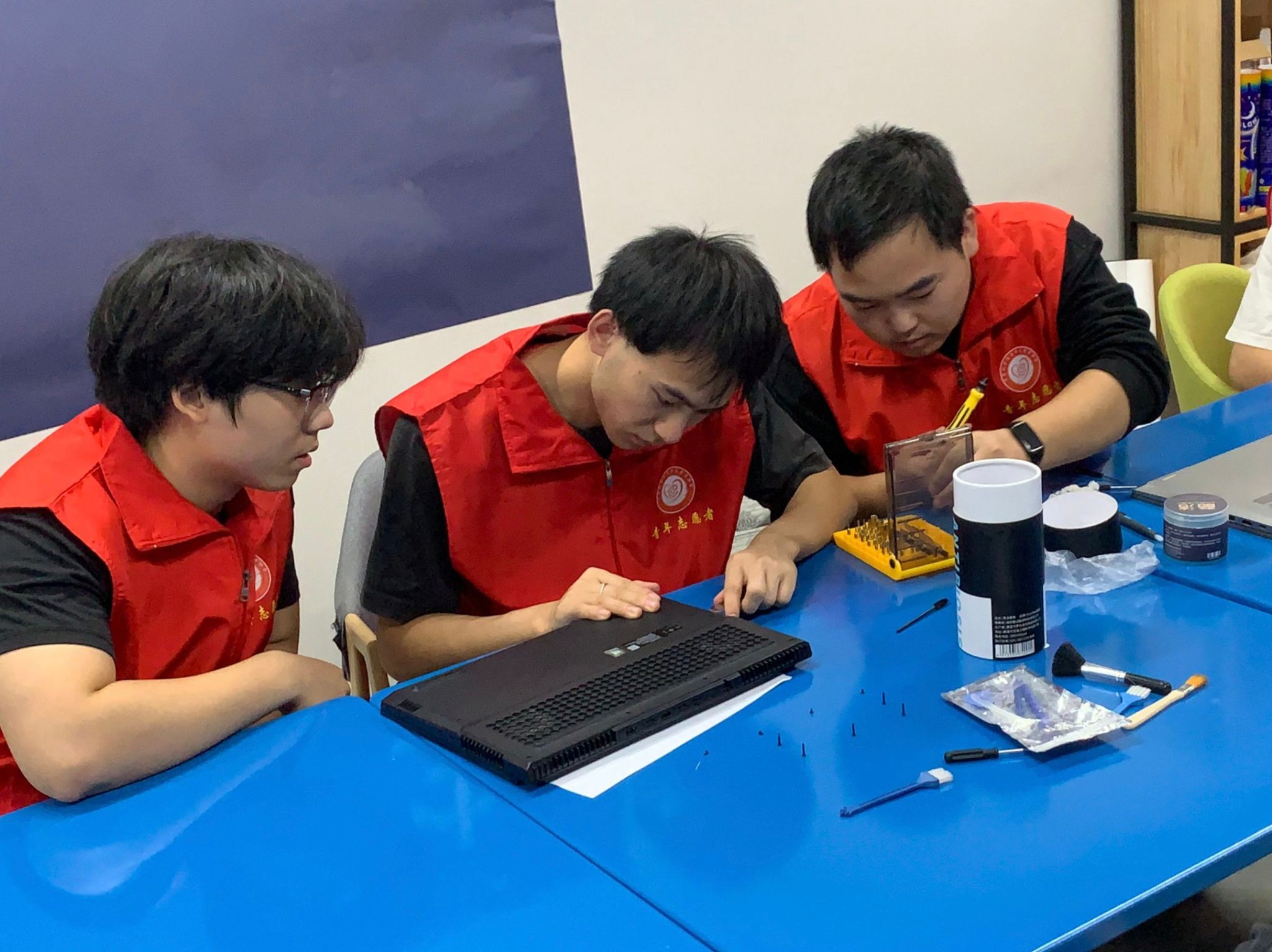 活动当天,计算机流动服务站人头攒动,同学们纷纷携带自己的电脑来到活动现场,志愿者们也热情积极地接待每一位同学,并且耐心询问电脑的不同机型、运行状况和拆机意愿,最后对每一个同学进行相应的电脑除尘。在除尘过程中,志愿者们运用专业的除尘工具,仔细清理电脑内部的灰尘与污垢,并对同学们的电脑进行基础的表面清洁。