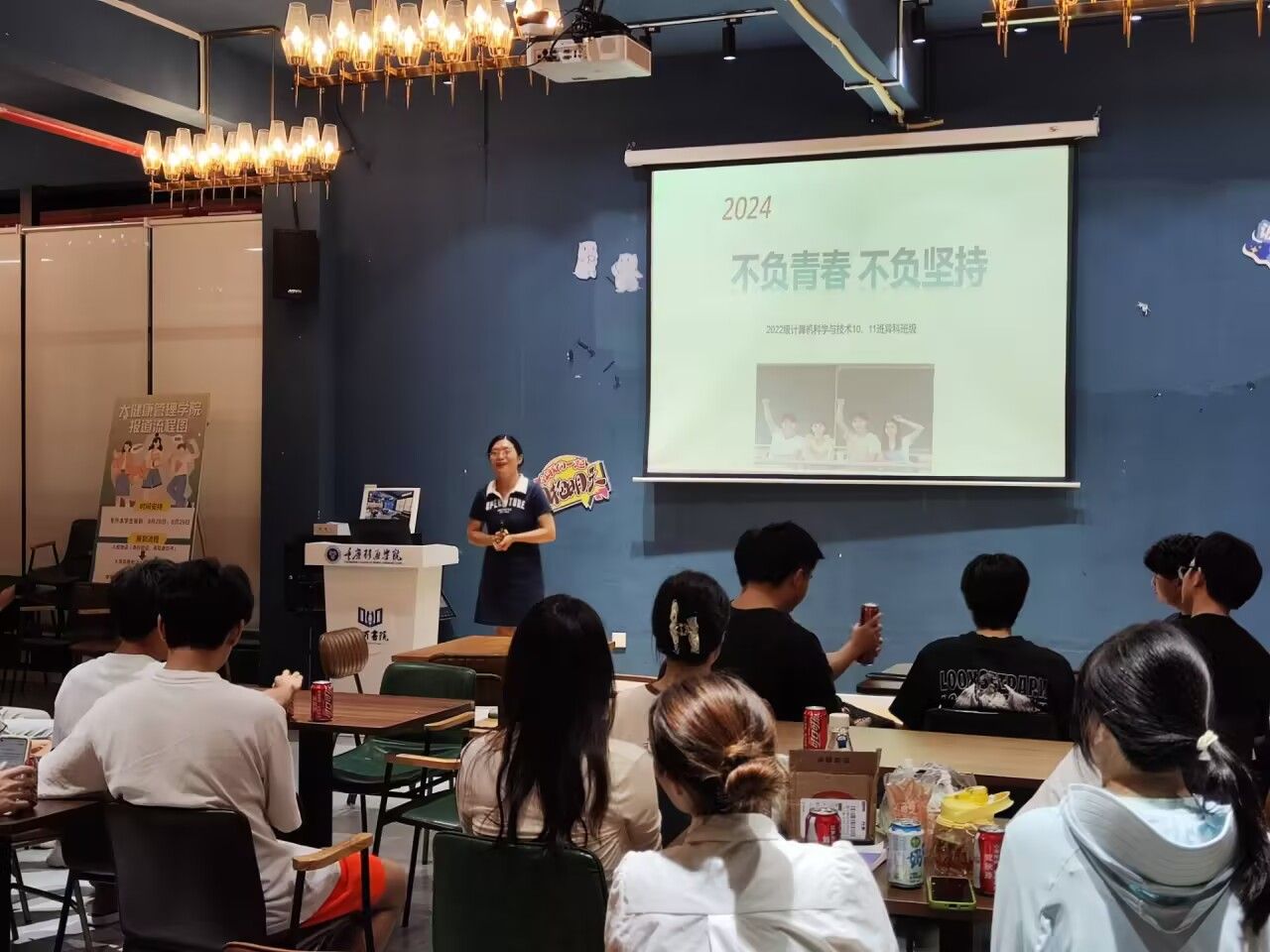 9月金秋,迎来了新学期的开始。为激励学生们在新的学期中继续前行,不负青春韶华,异科导师杨丽娟于2024年9月24日在綦河书院东篱故事茶馆开展了——“不负青春,不负坚持”新学期见面会主题活动,2022级计算机科学与技术10、11班的35位同学参加。