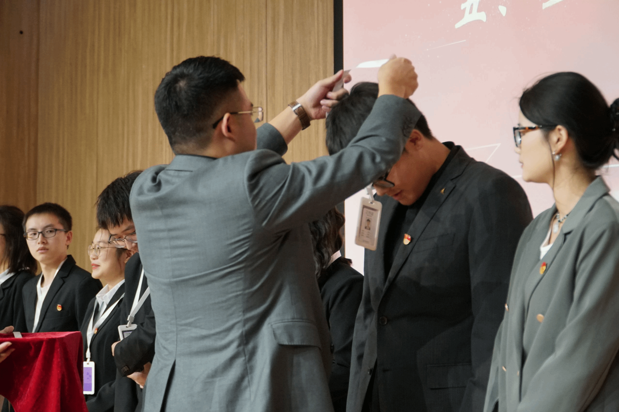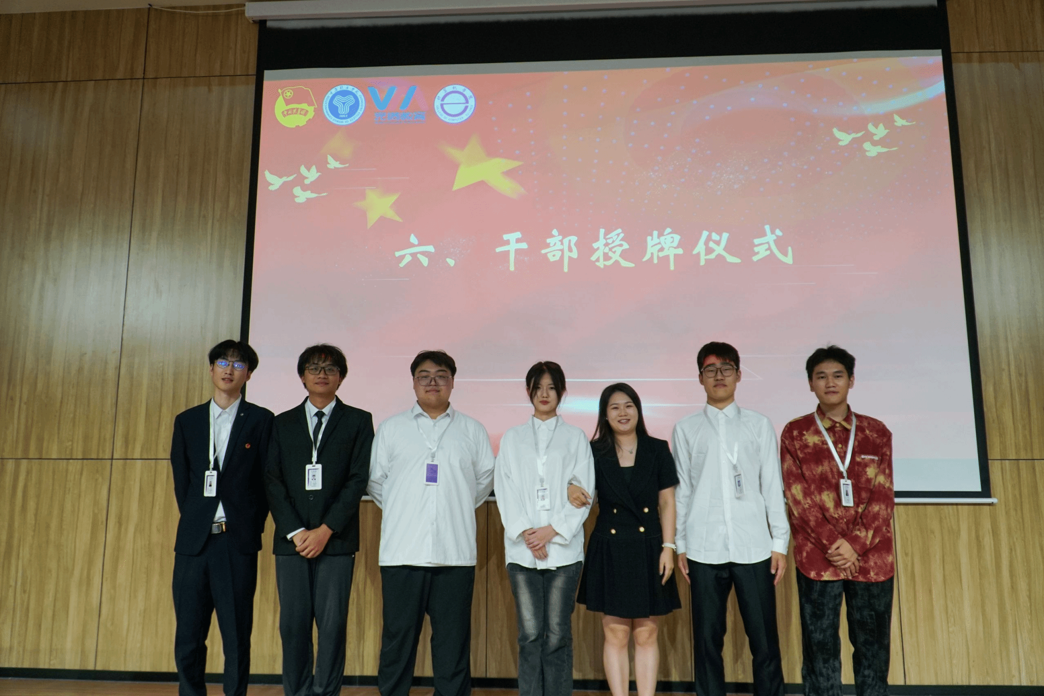 而授牌仪式无疑是大会的一大亮点。主席团成员们率先上台,他们身姿挺拔,眼神坚定,从团总支书记张雄老师手中接过那象征着责任与荣誉的牌子,开启了新征程的篇章。紧接着,团总支、学生会、青年志愿者协会以及就业创业助理团的干部们依次上台,接受老师们的授牌。那一块块牌子,在灯光下闪耀着,承载着学院的期望与重托,激励着每一位干部为学院的发展贡献力量。