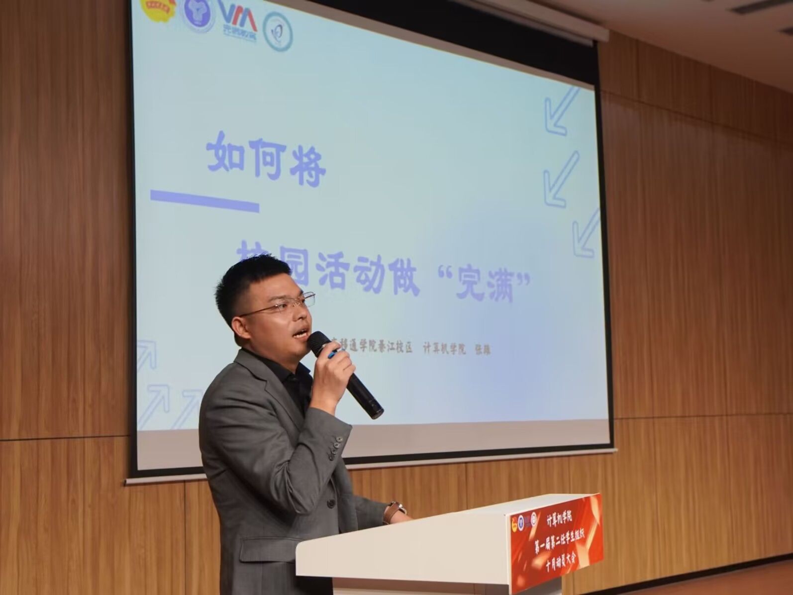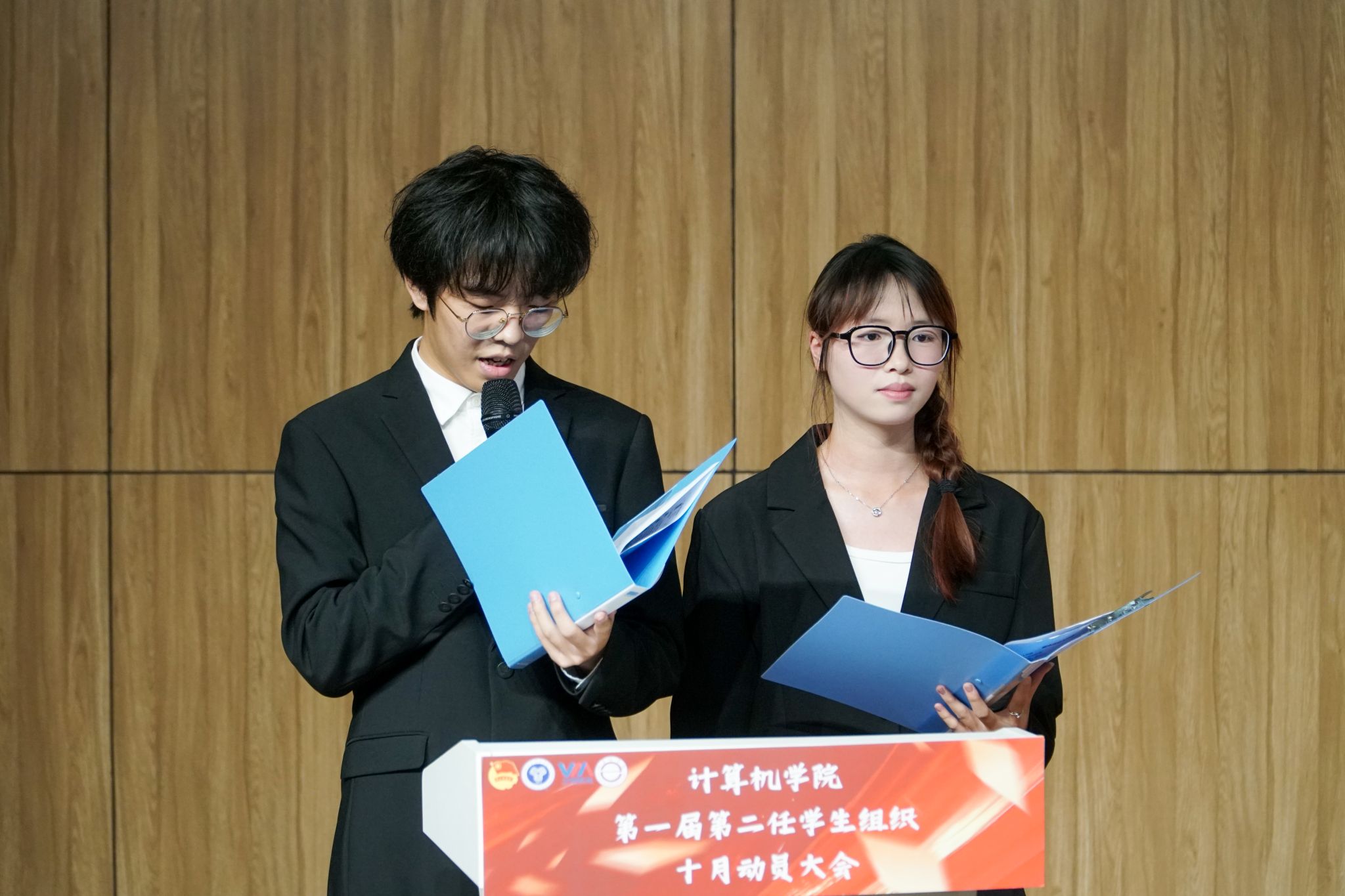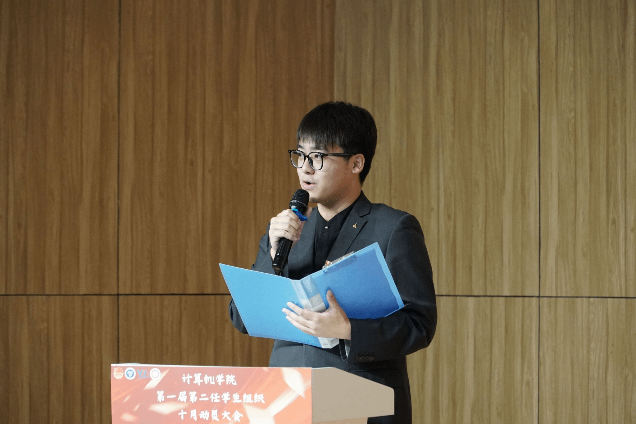 在金秋十月这个充满希望与收获的季节里,计算机学院第一届第二任学生组织十月动员大会于2024年10月23日在贤者楼多功能报告厅盛大召开。此次大会犹如璀璨的繁星,照亮了学院学生组织未来发展的道路,吸引了众多师生的目光,为校园增添了一抹别样的光彩。