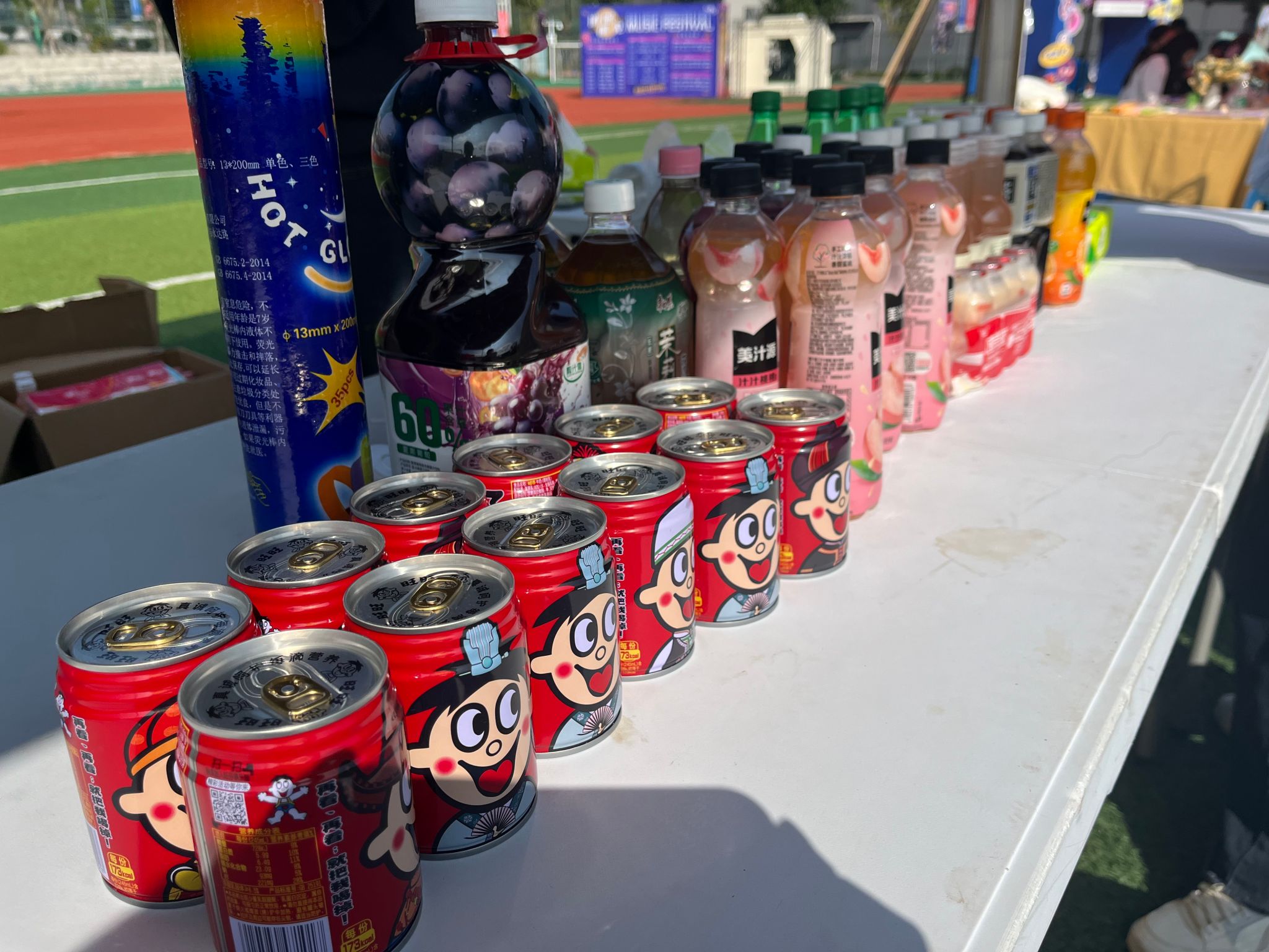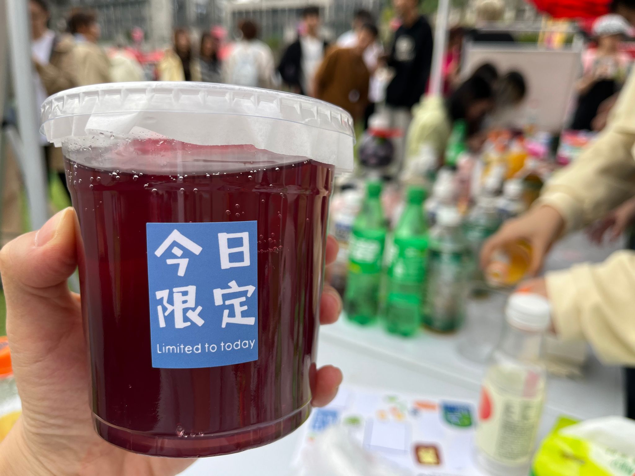 活动以独特的 “綦” 乐特调饮品为亮点,引来了众多美食爱好者前来品尝。活动开始前,工作人员将饮品按照类别、大小依次摆放,五颜六色的饮料大大小小堆满了摊位。参与者可以通过唱歌或画出自己最喜欢的特调饮品的方式得到饮料杯,并前往指定区域,用桌上的饮品调出自己的风格饮料。
