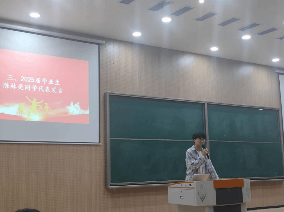2025届毕业生代表陈林亮同学结合自己的求职经历,向同学们介绍了如何收集招聘信息、如何筛选目标企业、如何准备笔试和面试等方面的经验和技巧。他建议同学们要充分利用网络资源,关注各类招聘网站和社交媒体等平台上的招聘信息;要积极参加各种校园招聘会和企业宣讲会,了解企业的招聘需求和用人标准;要注重提升自己的专业技能和英语水平,为将来的职业发展打下坚实的基础。