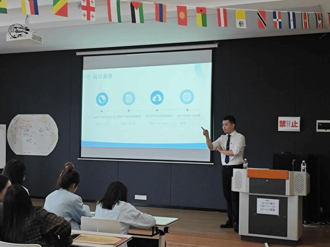 邦唐邦(北京)知识产权服务重庆分公司、权唐法律咨询公司及北京七夏专利事务所则通过生动的案例分析,展示了其对人才的重视和自身在知识产权领域强大的硬实力。宣讲中,公司负责人不仅介绍了招聘流程、岗位需求及福利待遇,还特别强调了公司对于员工职业发展的支持,鼓励学生们积极投递简历,推动知识产权行业的发展。