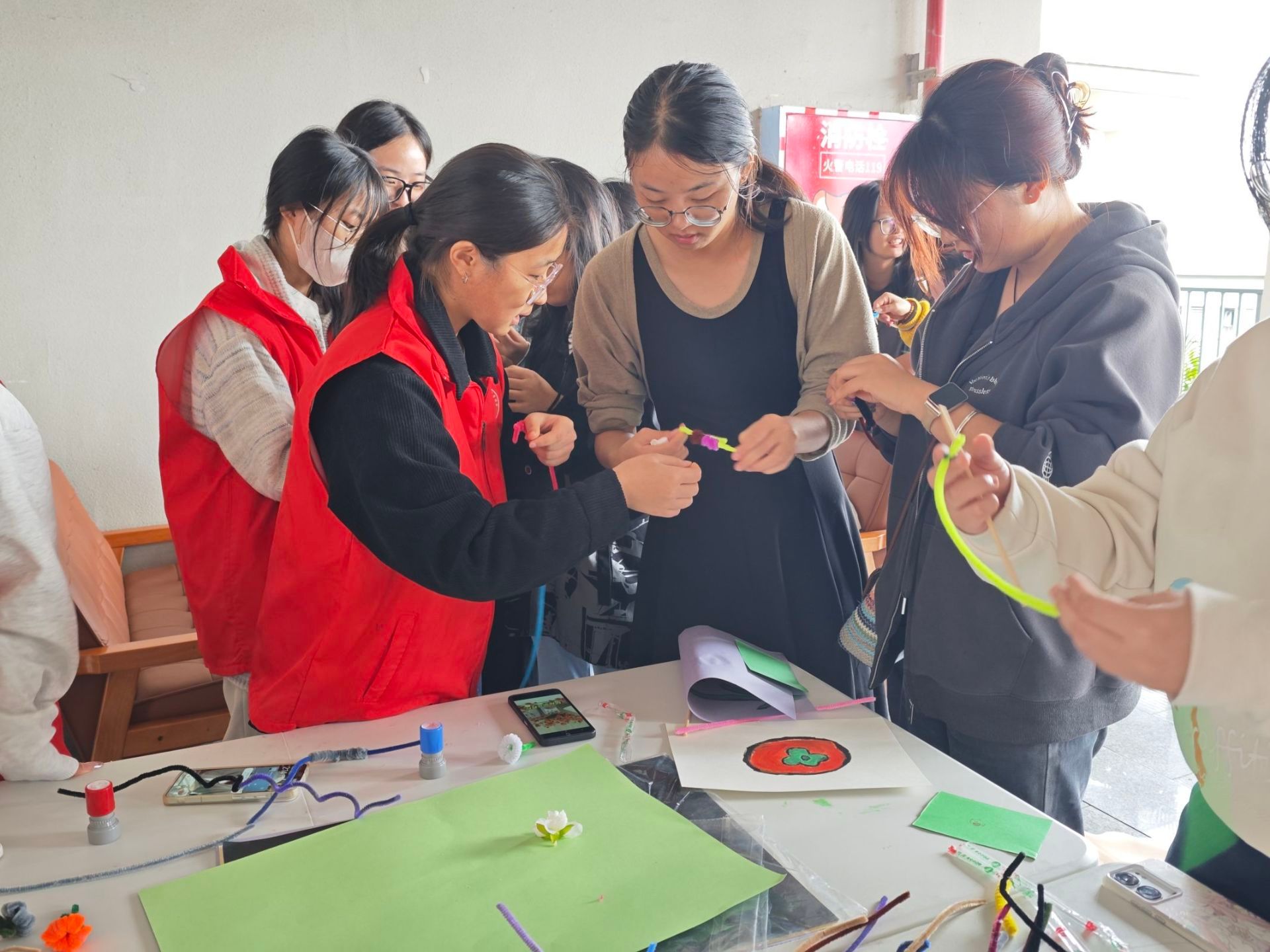 活动当天,阳光初露,金色的光芒洒在玉棠书院的每一个角落。志愿者们陆续抵达,领取象征热情与奉献的红马甲。穿戴整齐后,志愿者们有条不紊地布置活动场所,确保所有物资在活动开始前准备就绪,为即将到来的节气文化活动打下温暖的基调。