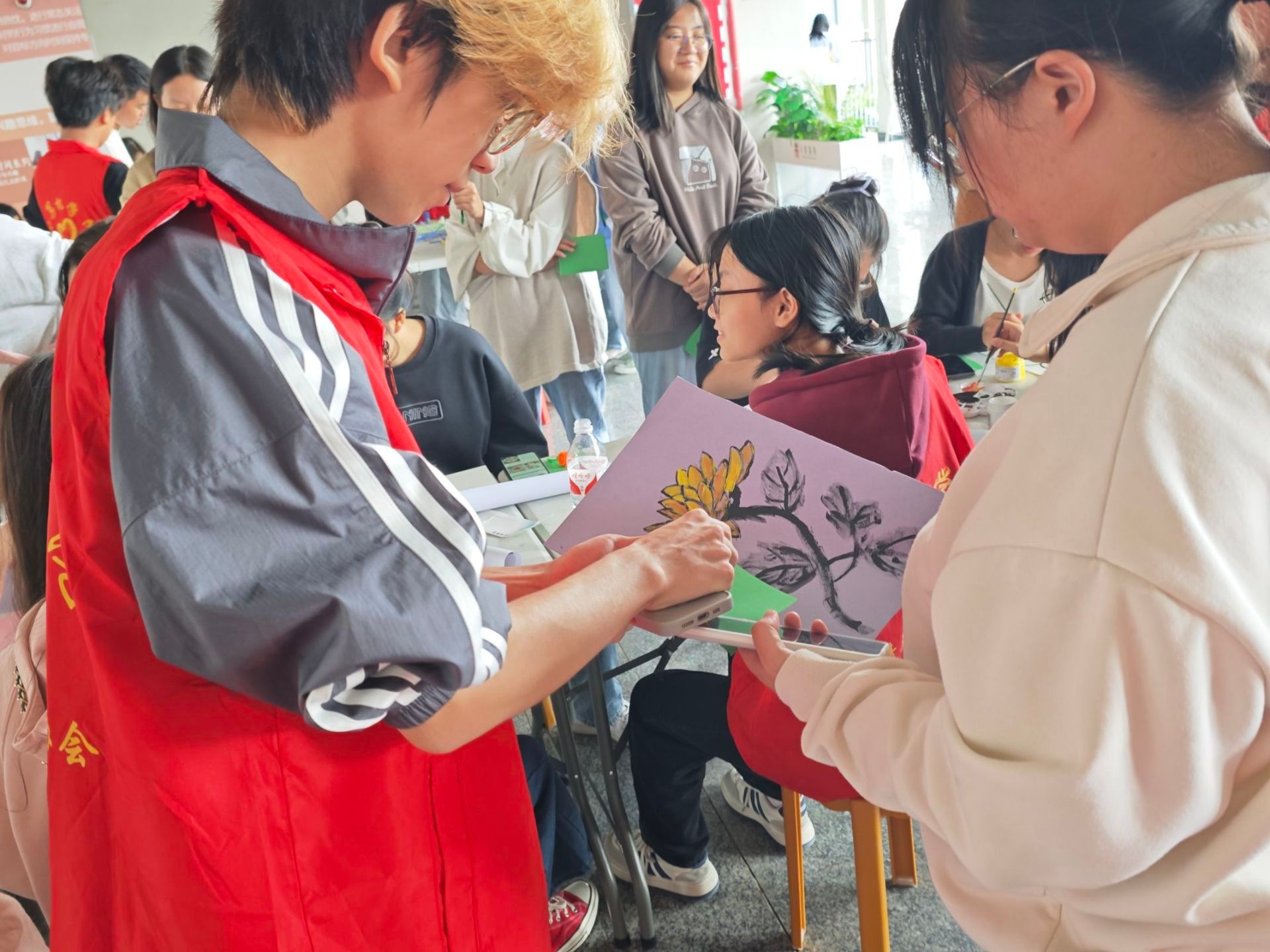 秋风起,黄叶落,霜降来。10月27日下午,计算机学院“链古传今”24节气传统文化志愿服务专项支队携计算机学院青年志愿者协会和玉棠书院自治委员会及2024级计算机科学与技术1班班团,于玉棠书院中庭举办了一场有趣的霜降主题文化体验活动。活动中,参与者们通过制作柿子花束、创意绘图和温馨合影,不仅加深了对传统文化的理解,也在互动中留下了难忘的回忆。