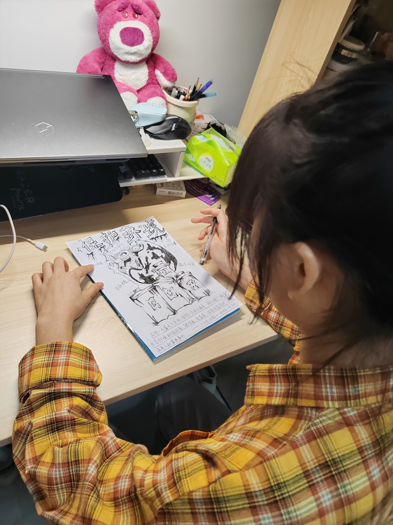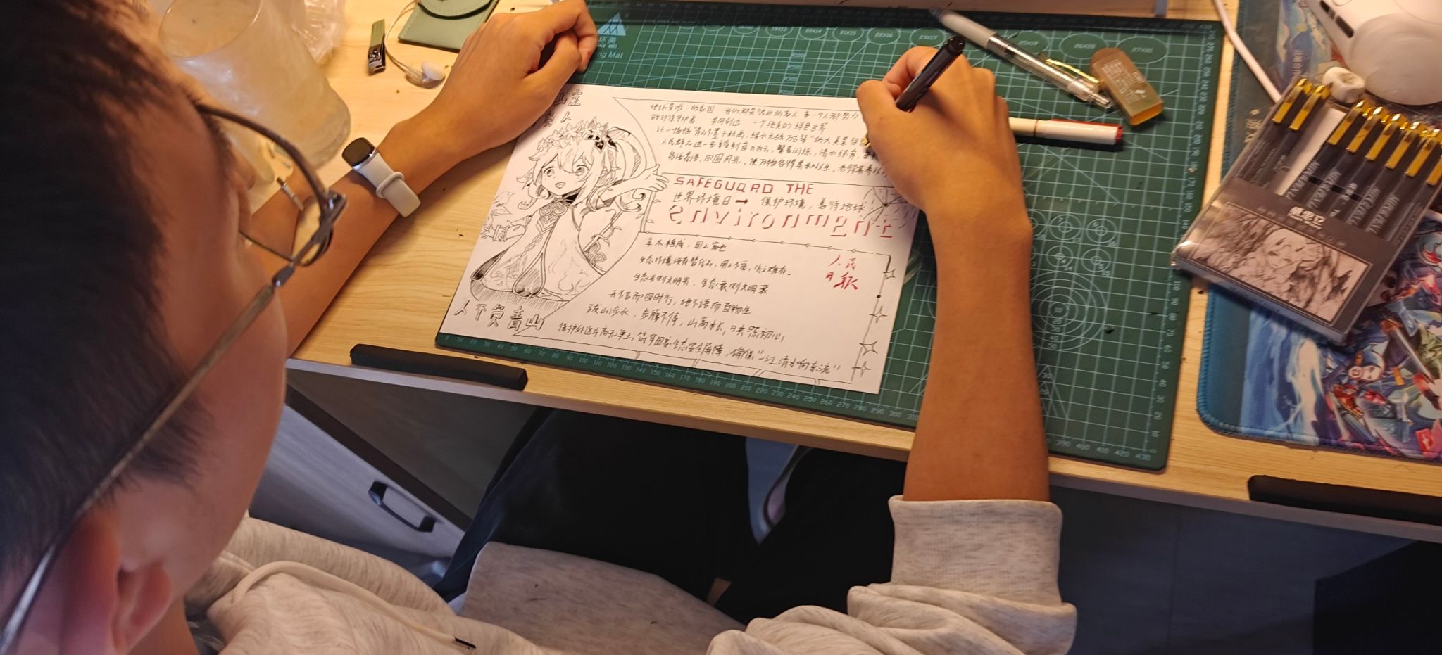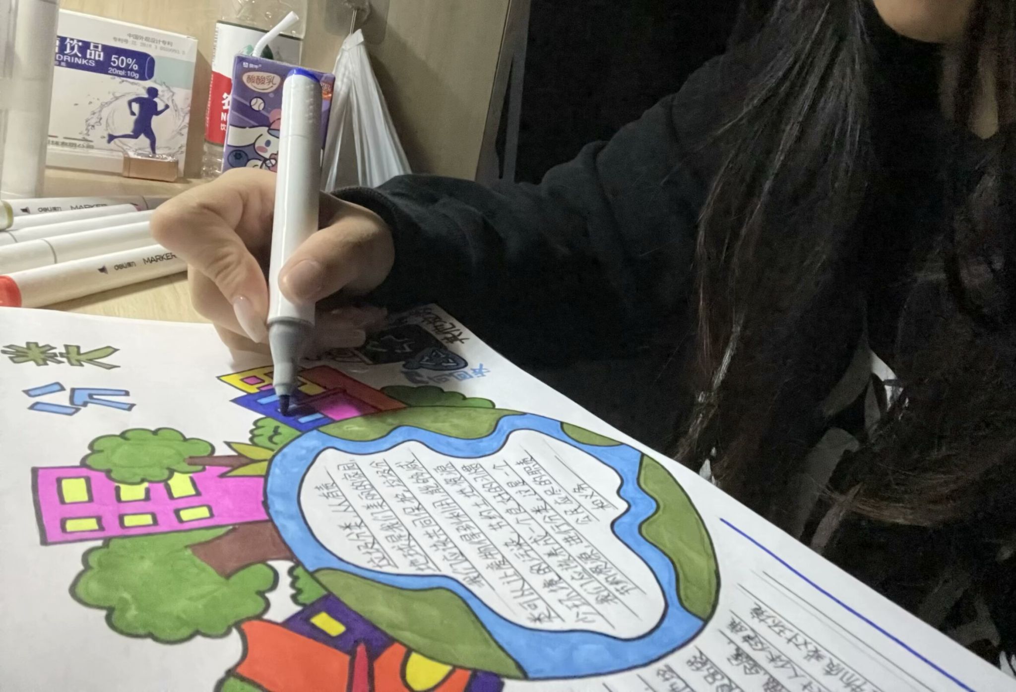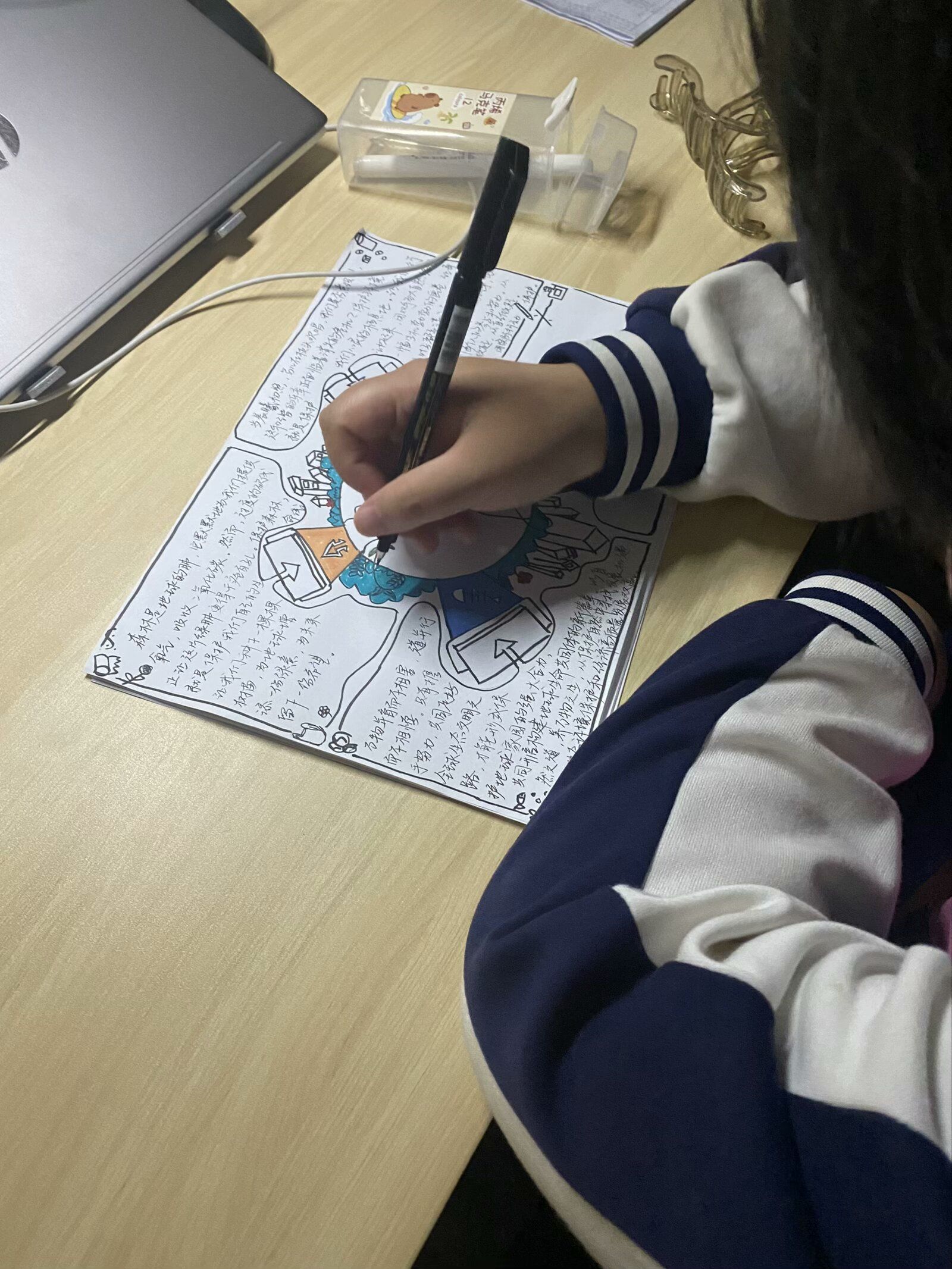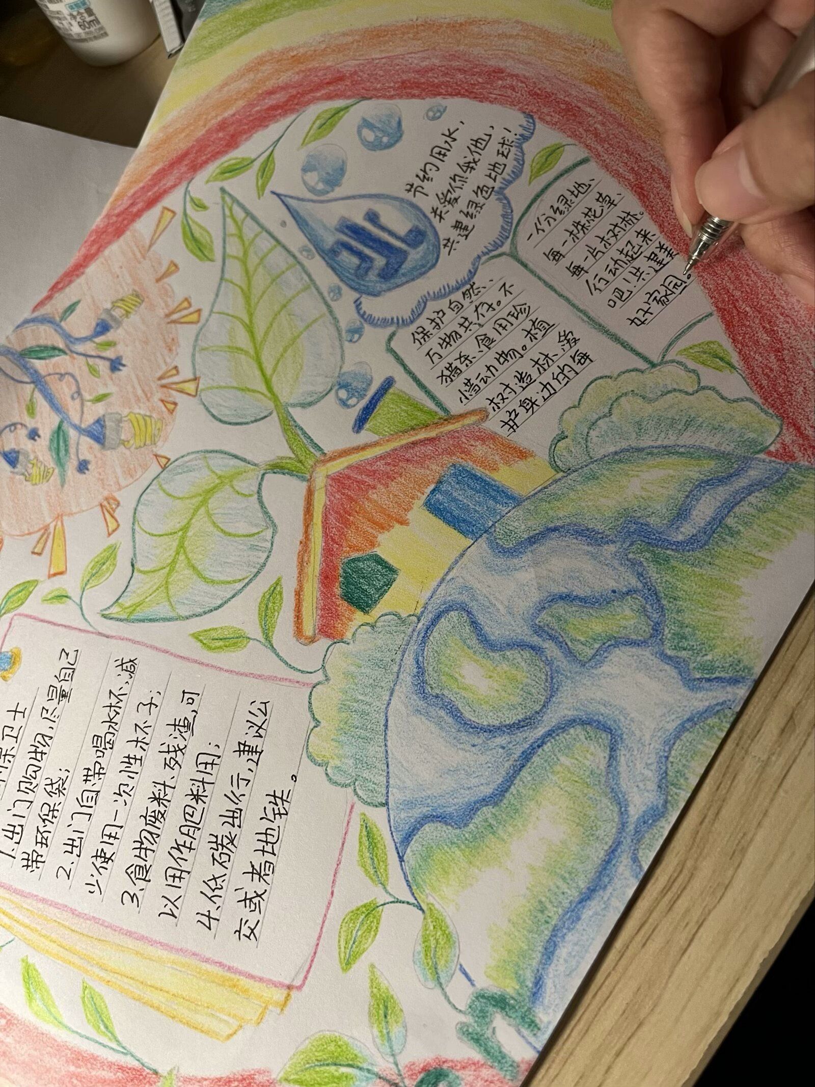 活动伊始,便得到了同学的积极响应。大家纷纷拿起画笔,将对环保的热爱与思考融入到一张张精美的手抄报中。从构思到绘图,从书写到装饰,每一个环节都倾注了参与者的心血。他们以独特的视角和创意,展现了对环境保护的深刻理解。