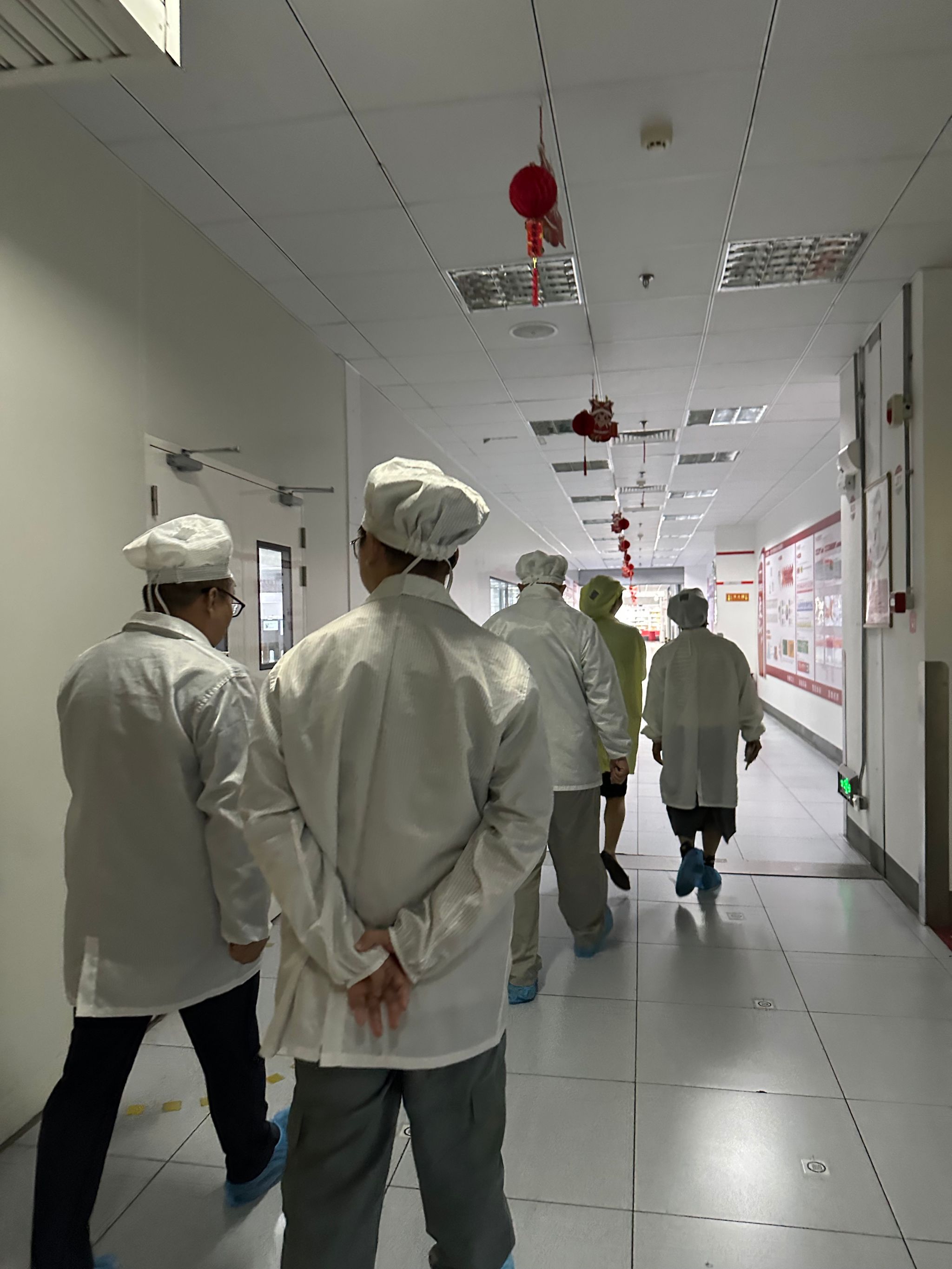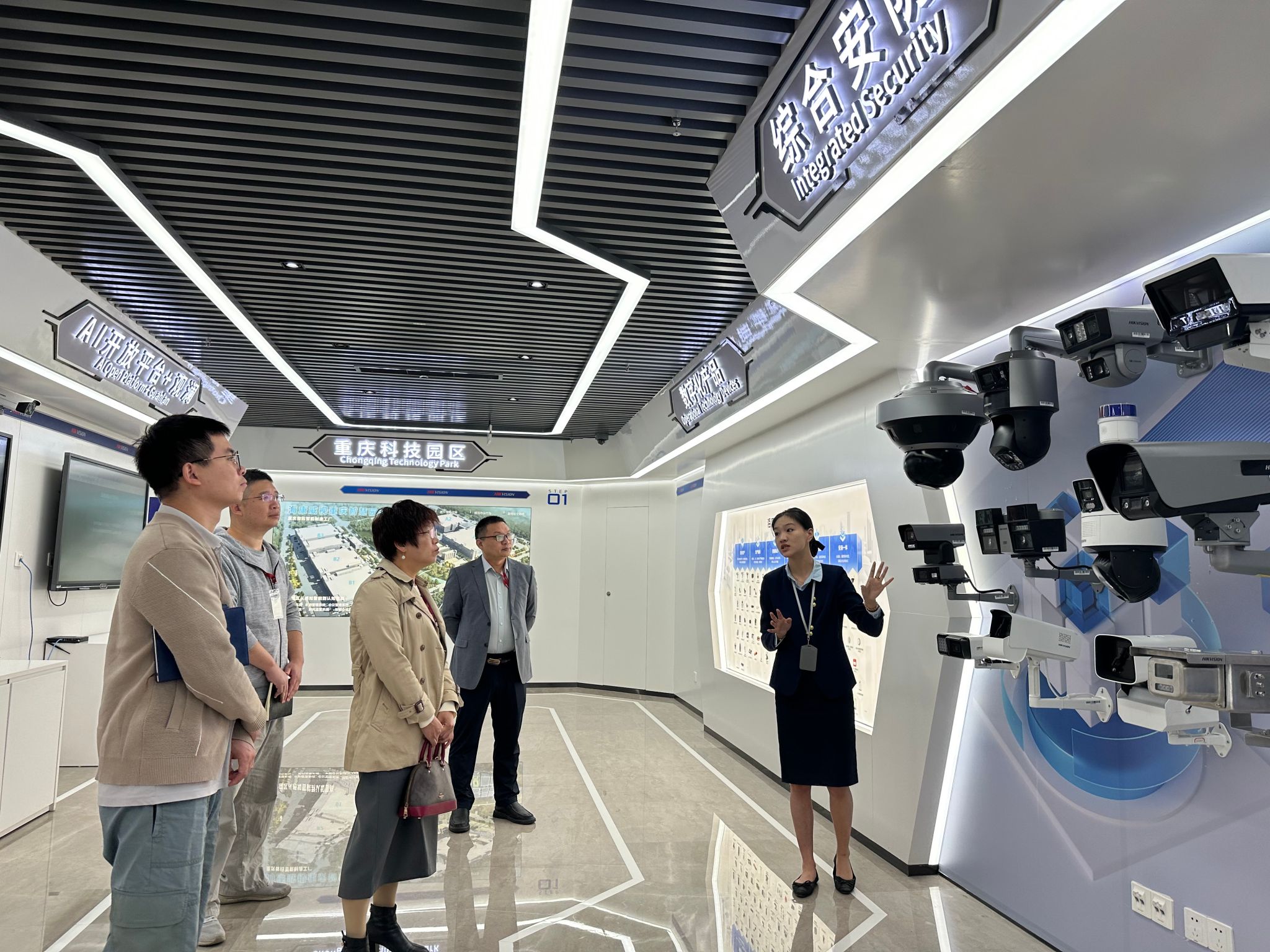 海康威视作为有控股混合所有制企业,成立于2001年,二十年来不断融合前沿技术进行技术创新,产品和解决方案应用到全球150多个国家和地区。作为全球领先的智能物联网解决方案提供商,其在安防监控、大数据服务等领域遥遥领先,与计算机学院的专业方向高度契合。海康威视重庆基地位于重庆大渡口区,占地258亩,目前在职员工约8000人,是大渡口区核心重点企业。在讲解员的带领下首先参观了海康威视的企业展厅,亲身体验了公司的最新技术应用,了解海康威视在渝发展历程,对海康威视在智能物联网领域的强大实力有了更直观的认识。紧接着,一行人换上防尘服前往生产车间进行实地考察,生产车间配置了集生产计划、原料准备、生产管理于一体的生产执行系统(MES),拥有自动化物料存储仓库、自动化机械手臂、自动化整装线、自动测试系统、自动化包装及成品智能分拣线,产品质量及可靠性远超业界先进水平。