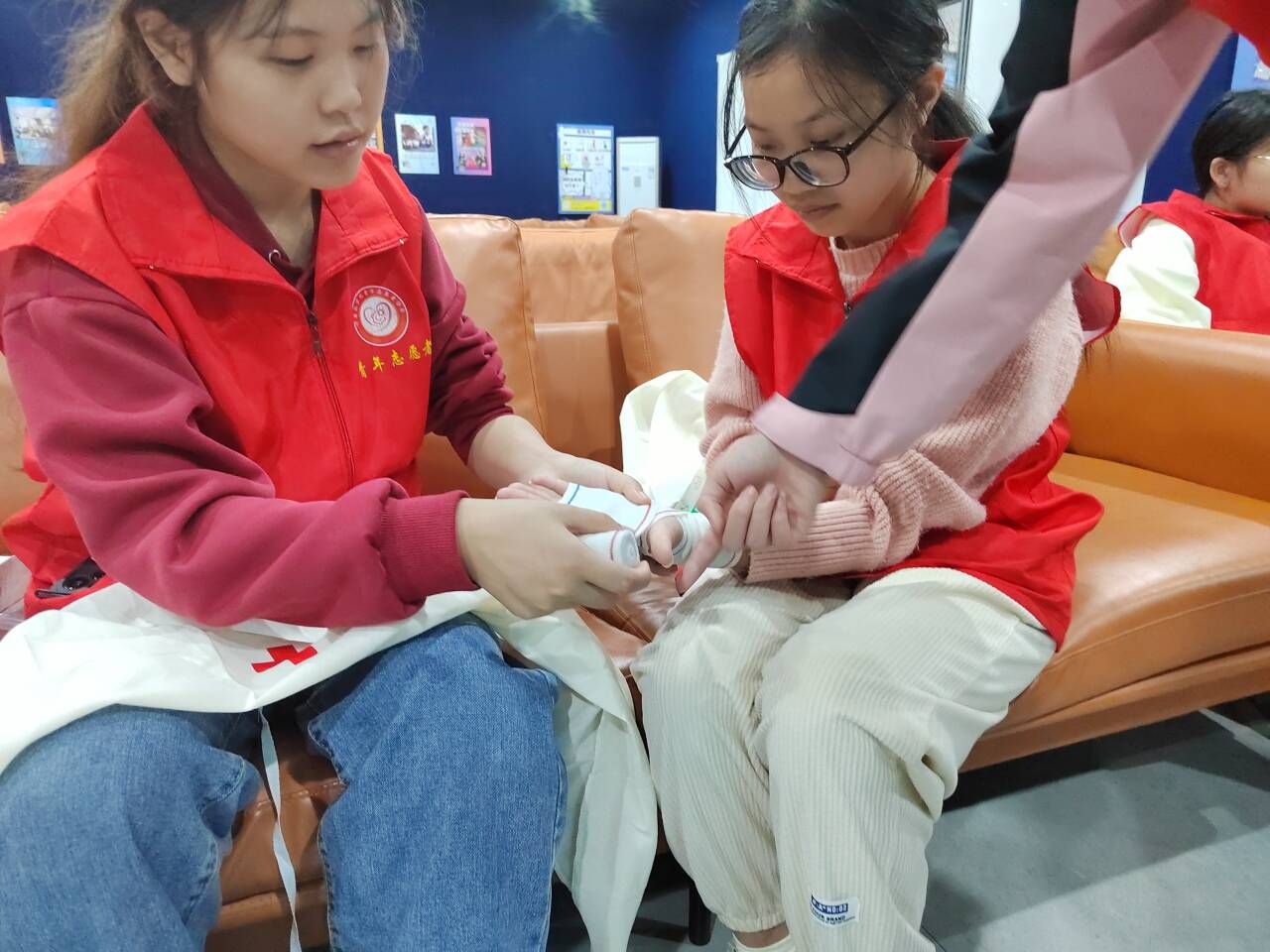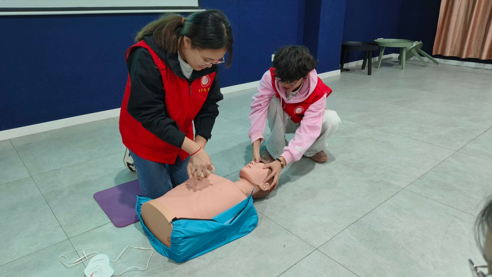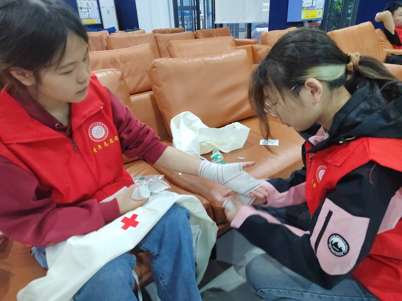 在支队长的指导下,成员们纷纷投入实践练习。他们按照支队长的指导,认真地进行着心肺复苏和包扎技巧的练习。尽管起初有些手忙脚乱,错误频频,但在支队长的指点和鼓励下,他们仿佛茅塞顿开,及时改正错误,逐渐克服着困难。通过多次的练习,成员们不仅巩固了所学知识,对救护技能变得得心应手起来,提高了自己的应急处置能力,还在这种模拟救助场景中与队员合作,增强了团队协作和沟通能力。
