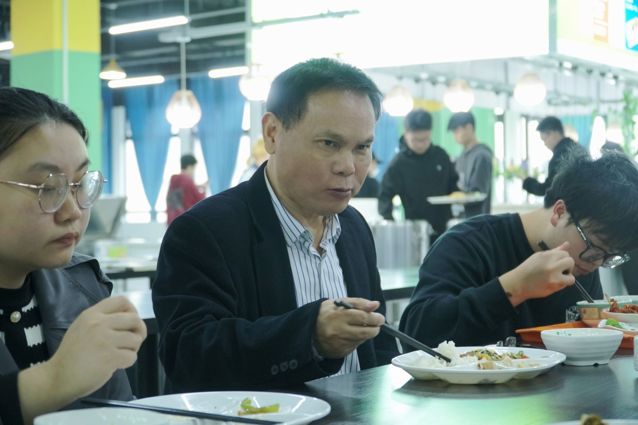 接待日活动结束后,林泽金院长与老师同学们共同在食堂就餐。就餐过程中,林泽金院长与老师同学们闲聊,了解到大家对学校食堂的评价,拉近了“心”距离。最后,活动在笑语晏晏中落下帷幕,但大家的热情会延续下去,共同书写更加辉煌的学院未来。