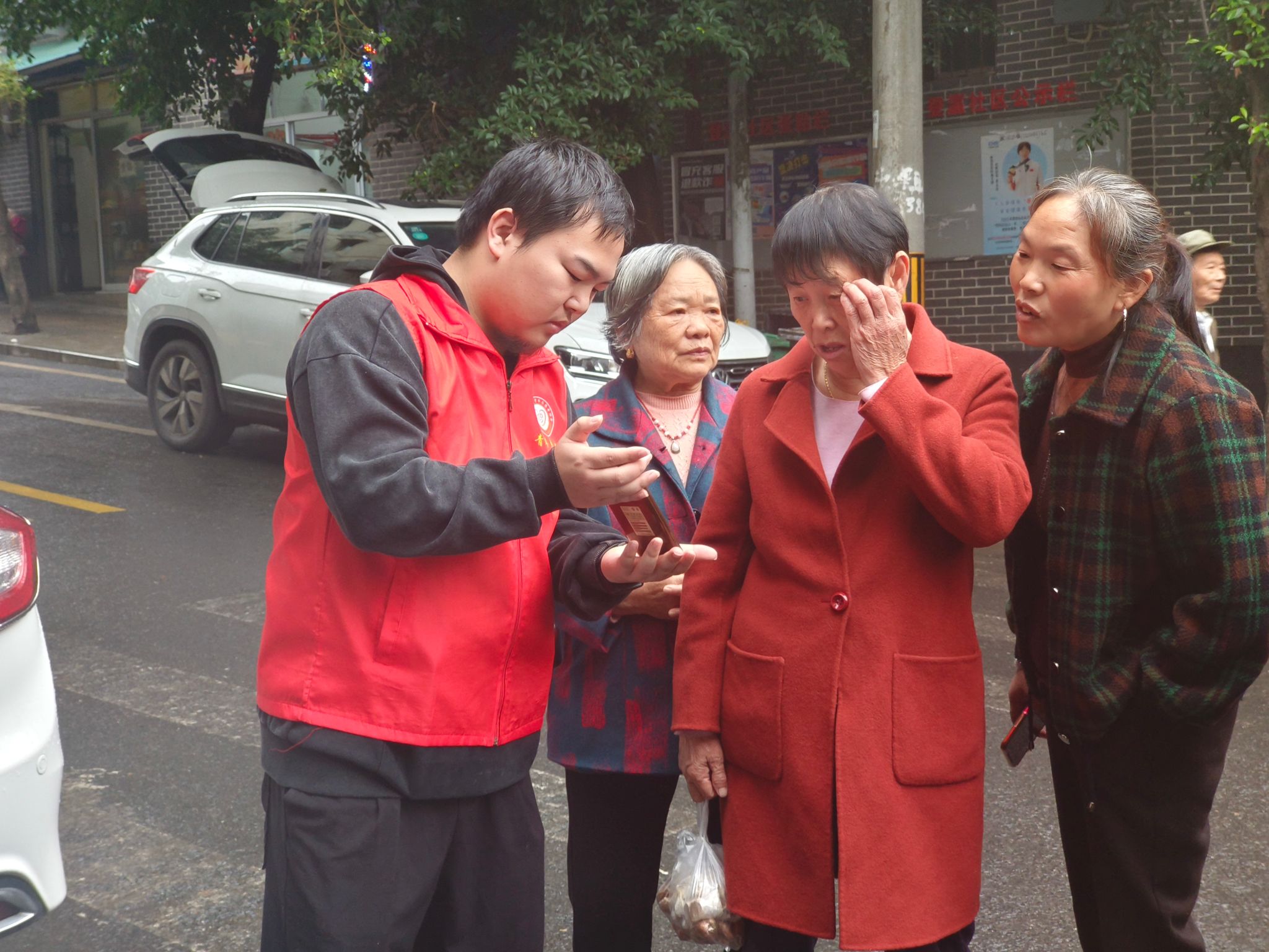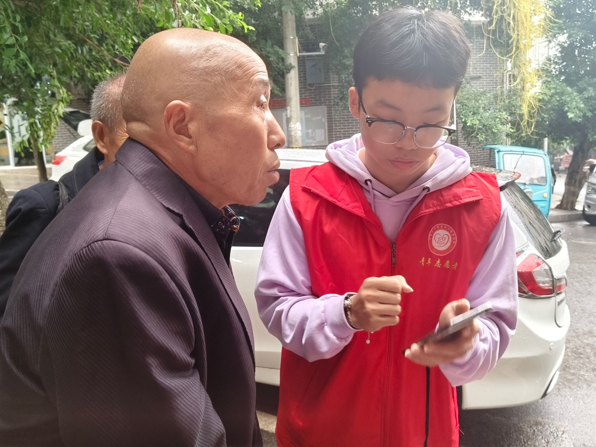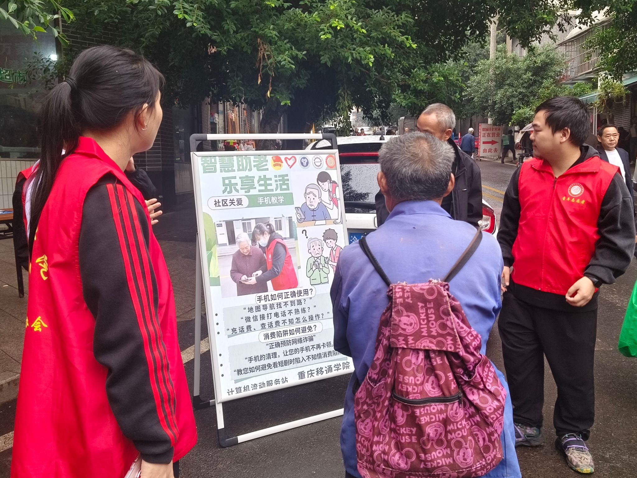活动期间,社区广场上人来人往,气氛热烈。身着醒目红色马甲的志愿者们面带微笑,热情洋溢地迎接每一位前来咨询的社区老人。他们精心准备的宣传海报上,清晰列出了此次活动提供的多元化服务内容,涵盖手机基础操作指导、内存优化清理、防诈骗知识普及以及隐形消费警示等,全方位满足老人们的需求。
