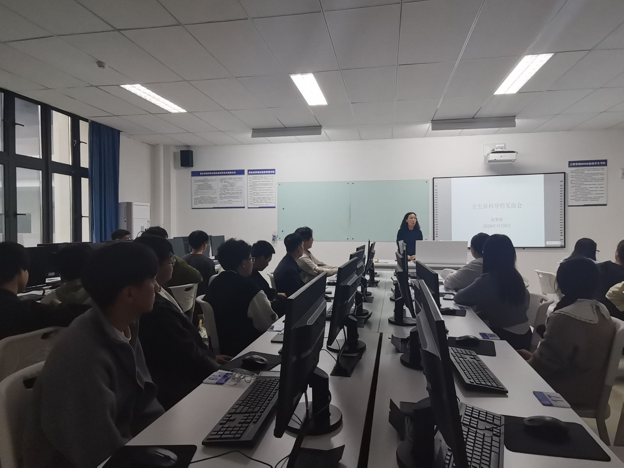 秋风送爽,金桂飘香,2024年11月6日下午,异科导师周梦娇与计算机学院计算机科学与技术专升本6-7班的同学于贤者楼327教室开展了首次异科导师见面会活动。此次活动旨在深入贯彻学校“全生异科导师”的育人理念,为同学的全面发展提供有力支持。