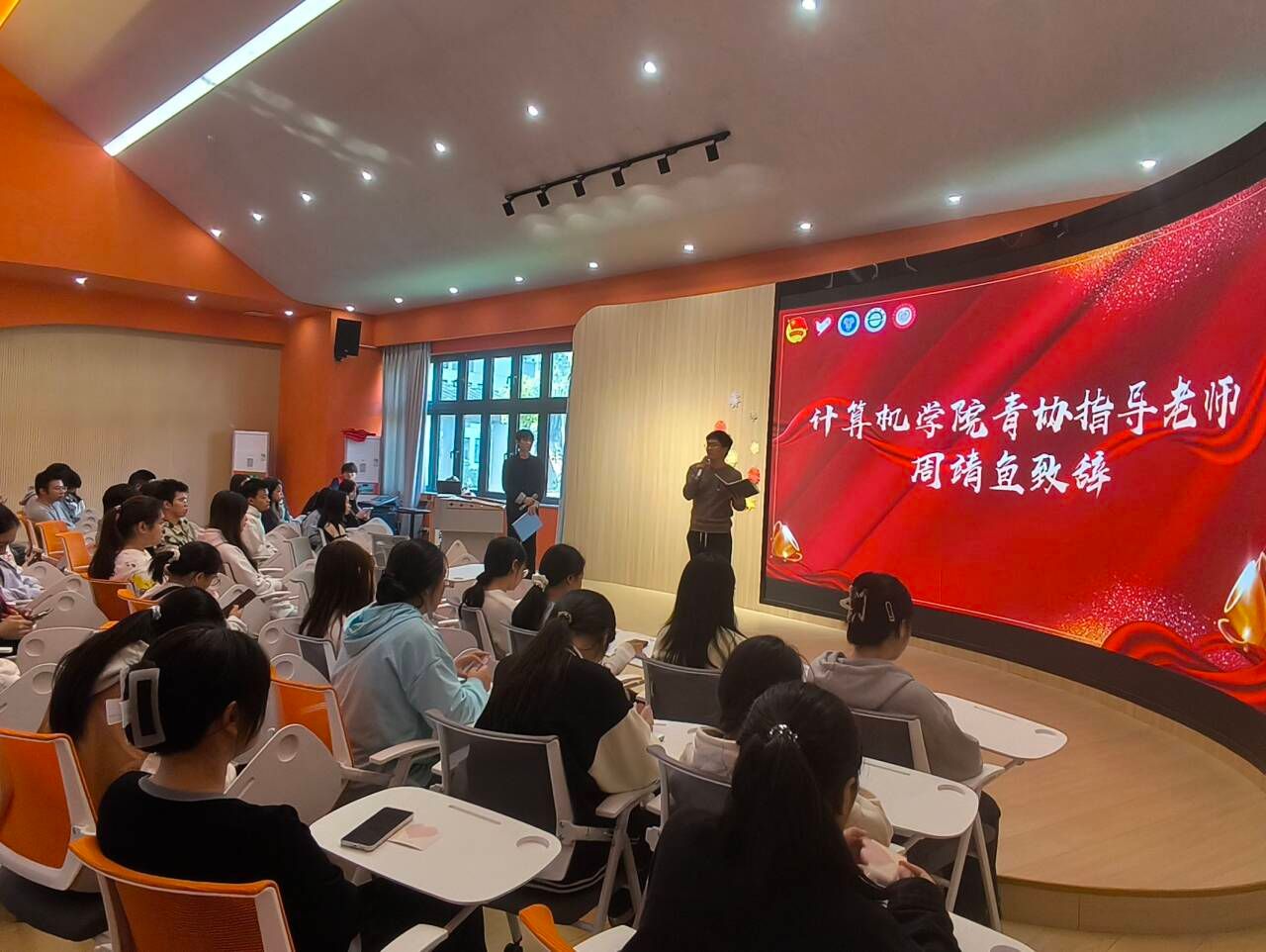 在热烈的掌声中,获奖选手依次上台领奖,计算机学院青协指导老师周靖鱼表示,同学们的积极参与体现了大家对于环保的重视,也表达了对环保的未来期望,并对获奖的同学致以最真挚的祝贺。这不仅是对他们积极参与活动的鼓励,也是对他们创意作品的认可,希望每个人心中都种下环保的种子,为保护环境做出自己的贡献,最后全体人员进行了合照留恋。