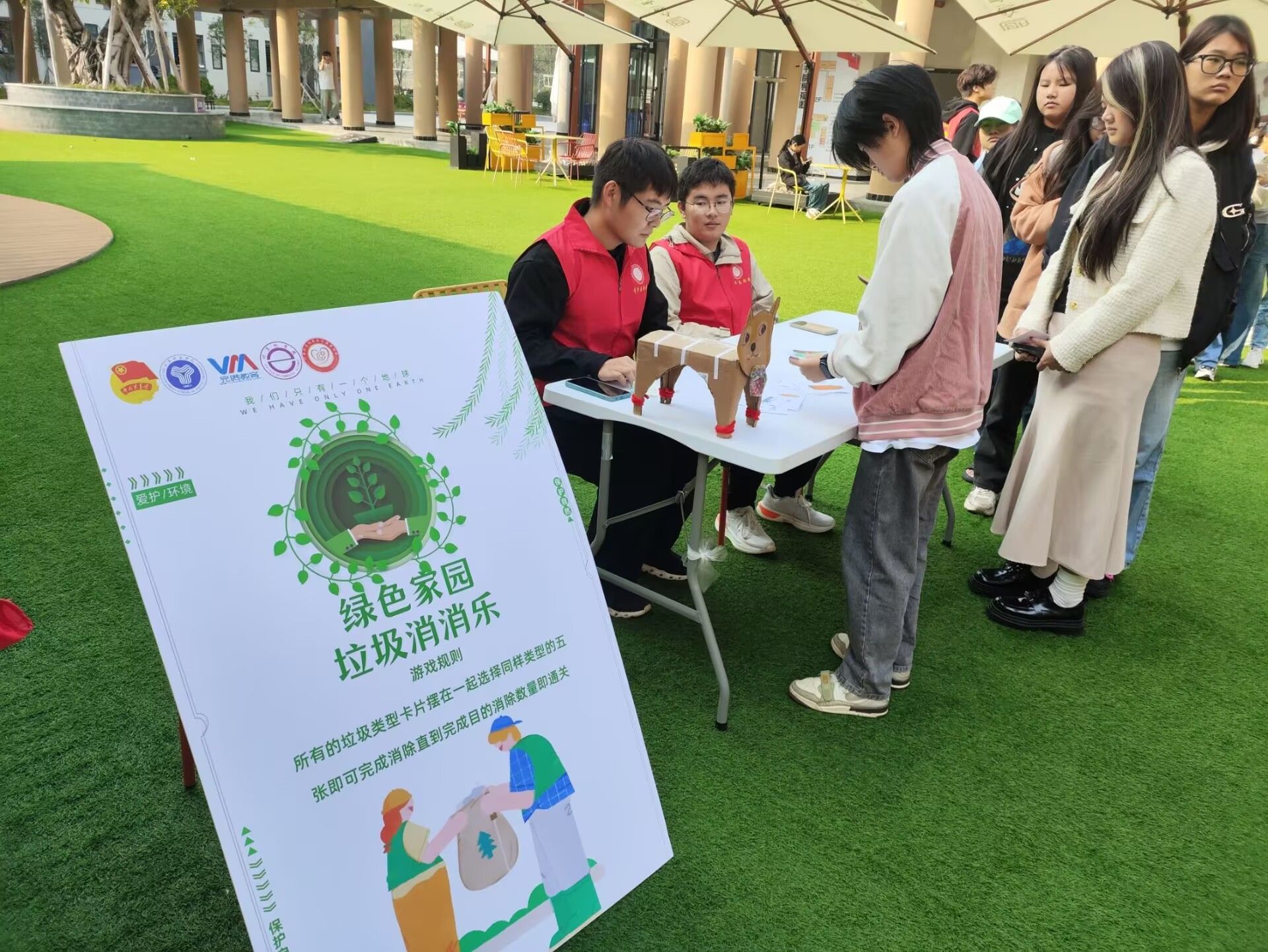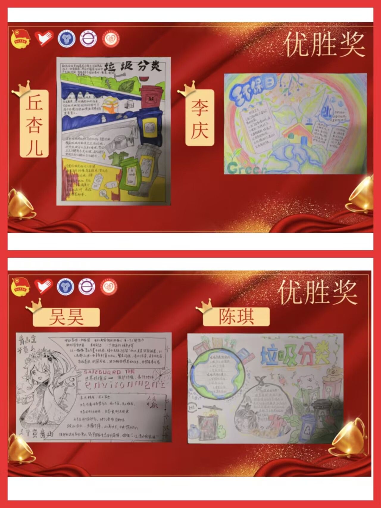 展出的优秀手抄报作品随风飘扬,在他们的笔下,手抄报成为了环保理念的艺术载体。为了让同学们更深刻的了解垃圾分类的知识内容。活动现场分别设置了“认清垃圾桶”“垃圾消消乐”“环保大转盘”三个摊位,同学们积极参与,旨在通过游戏的形式传播环保知识。