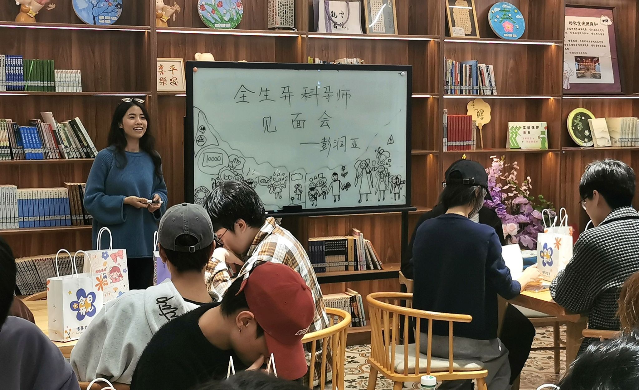 见面会伊始,彭润亚老师表示,作为全生异科导师,她深知自己肩负着引导学生全面发展、跨学科交流的重要使命。彭老师分享了担任异科导师的初衷,希望通过一系列的制度和活动,能够打破专业壁垒,引导同学们跳出本身的学科框架,接触和理解不同学科的知识和方法,从而拓宽视野,培养他们的综合素质和创新能力。她强调了异科导师在学业指导、职业规划、心理辅导等方面的重要作用,并承诺将全力以赴,为同学们提供全方位的支持和帮助。彭老师还分享了自己在过去担任导师过程中的一些经验和心得,鼓励同学们要勇于尝试、敢于创新,不断挑战自我、超越自我。