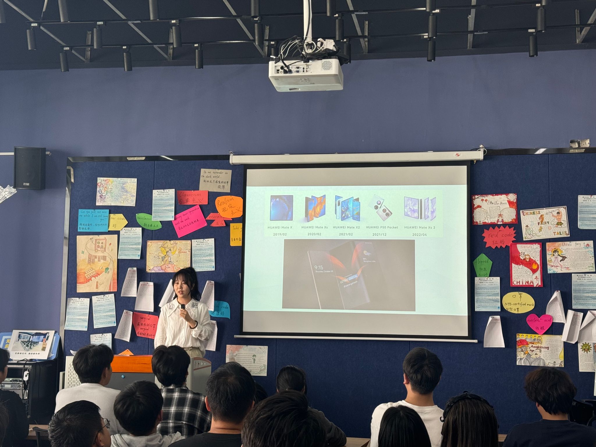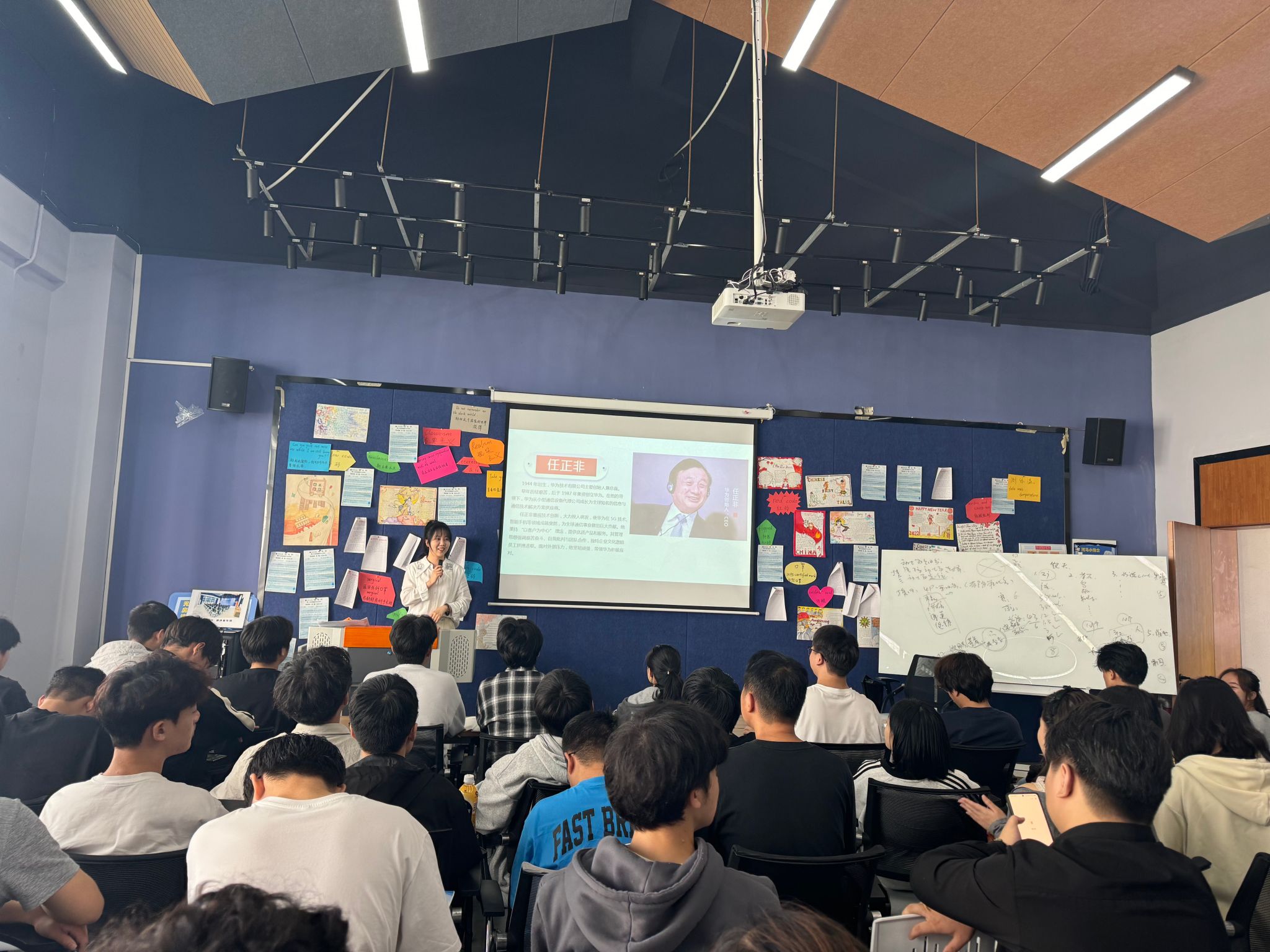 活动伊始,高老师分享《任正非与华为》一书。任正非,这位中国科技界的传奇人物,他所领导的华为公司在全球通信领域书写了壮丽的篇章。高老师以生动的语言和丰富的案例,深入剖析了任正非的领导哲学、奋斗历程以及华为的创新之路。从华为创业初期的艰难困境,到如今成为全球领先的科技企业,这其中蕴含着无数的智慧与勇气。任正非的坚持、务实和对技术的执着追求,为年轻人树立了榜样。他鼓励学生们要学习任正非的拼搏精神,在面对困难和挑战时,不屈不挠,勇往直前。
