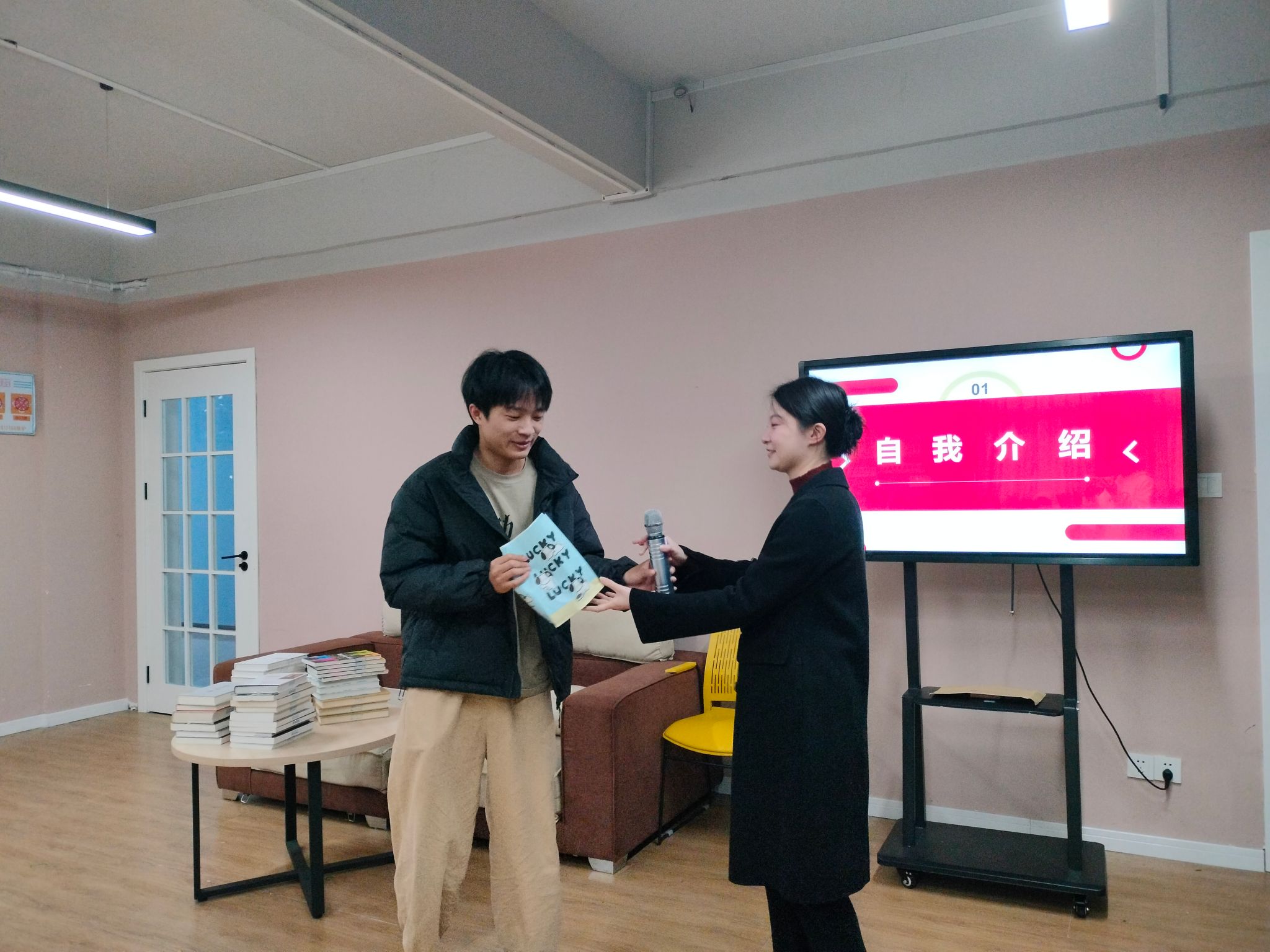 见面会伊始,陈雪梅老师做了详细的自我介绍,并精心给每一位同学准备了零食伴手礼,邀请每位同学走到台前,从姓名、家乡、兴趣爱好等方面介绍自己,相互认识,锻炼胆识。现场气氛十分活跃,迅速破冰。